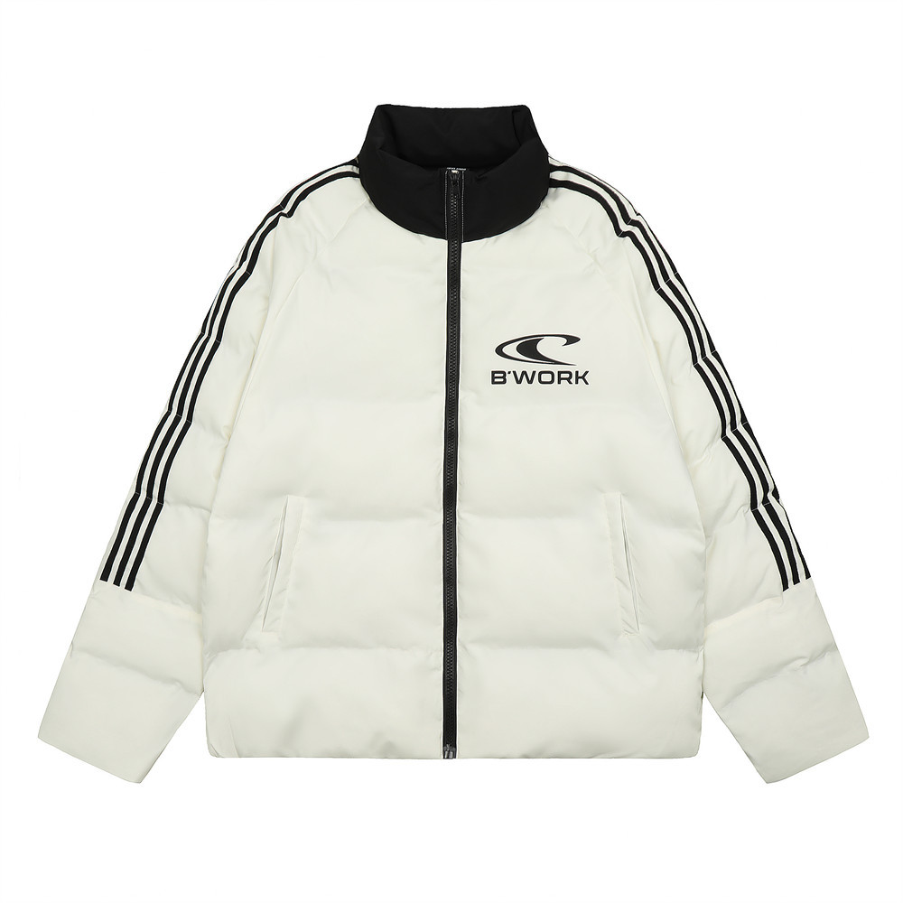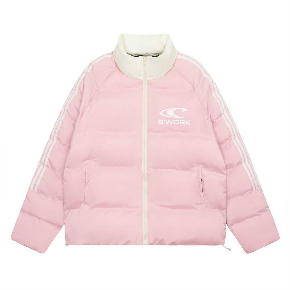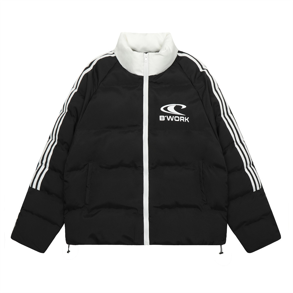Ribbon Patchwork Stand-up Collar Bread Loose Warm Cotton Coat