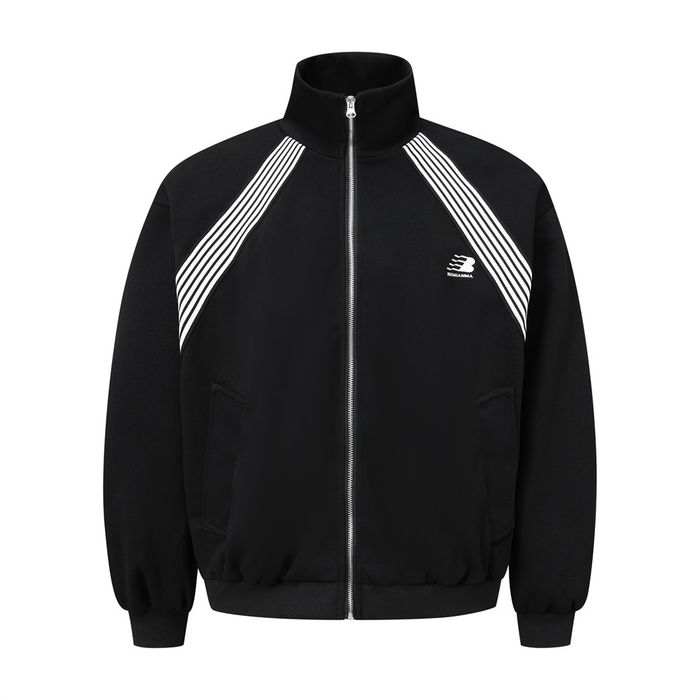 Ribbon Stitching Contrast Color Stand-up Collar Coat Sweatshirt