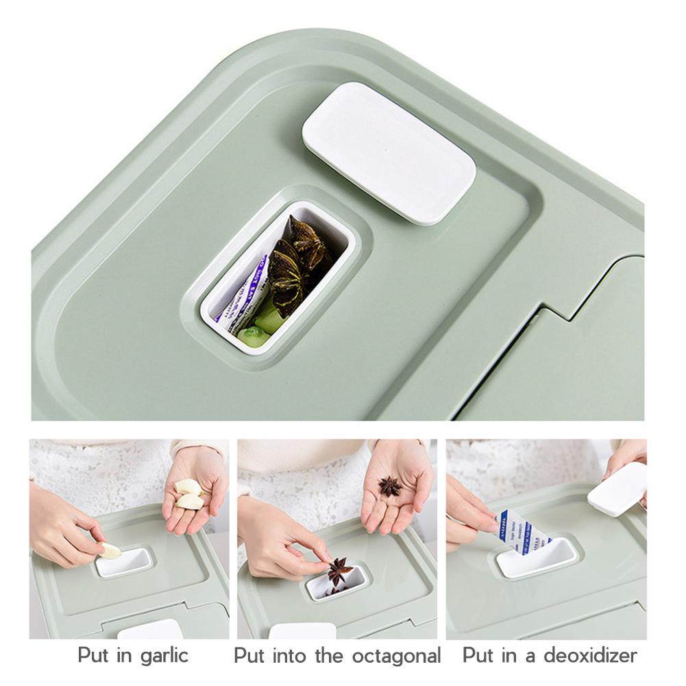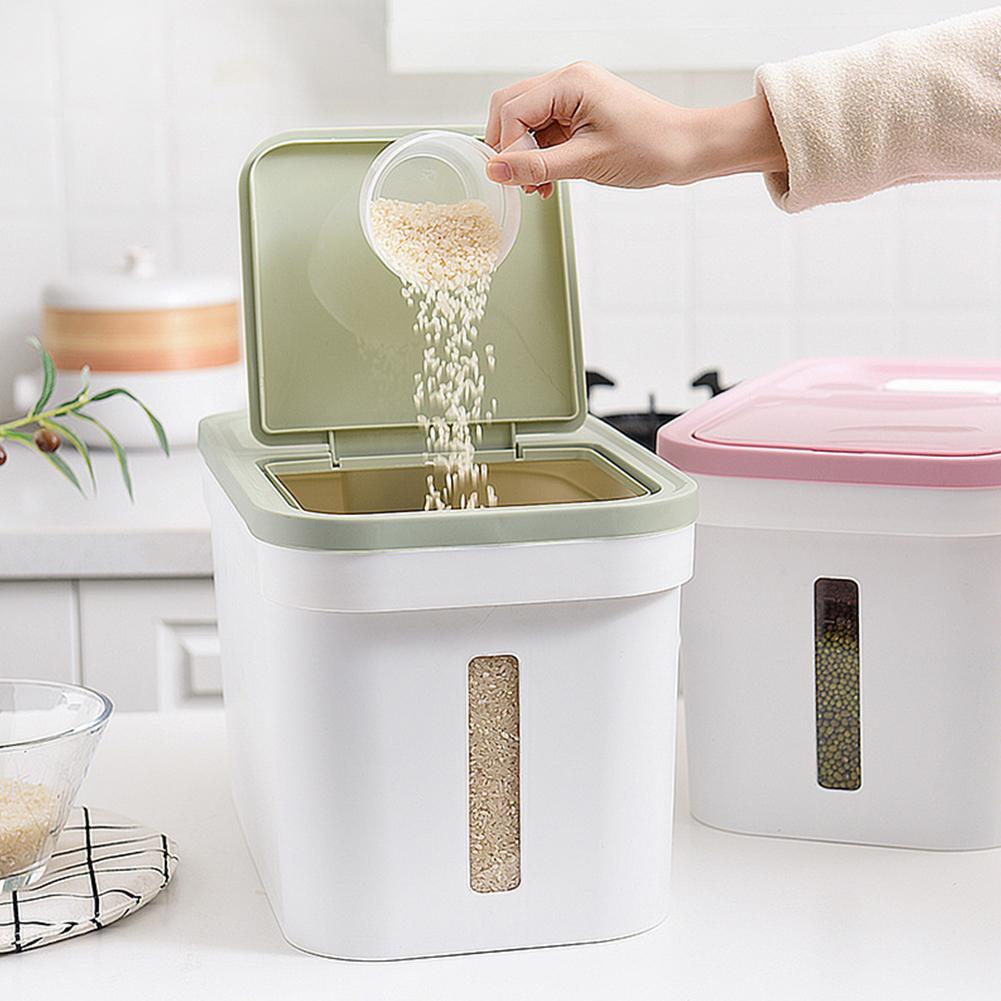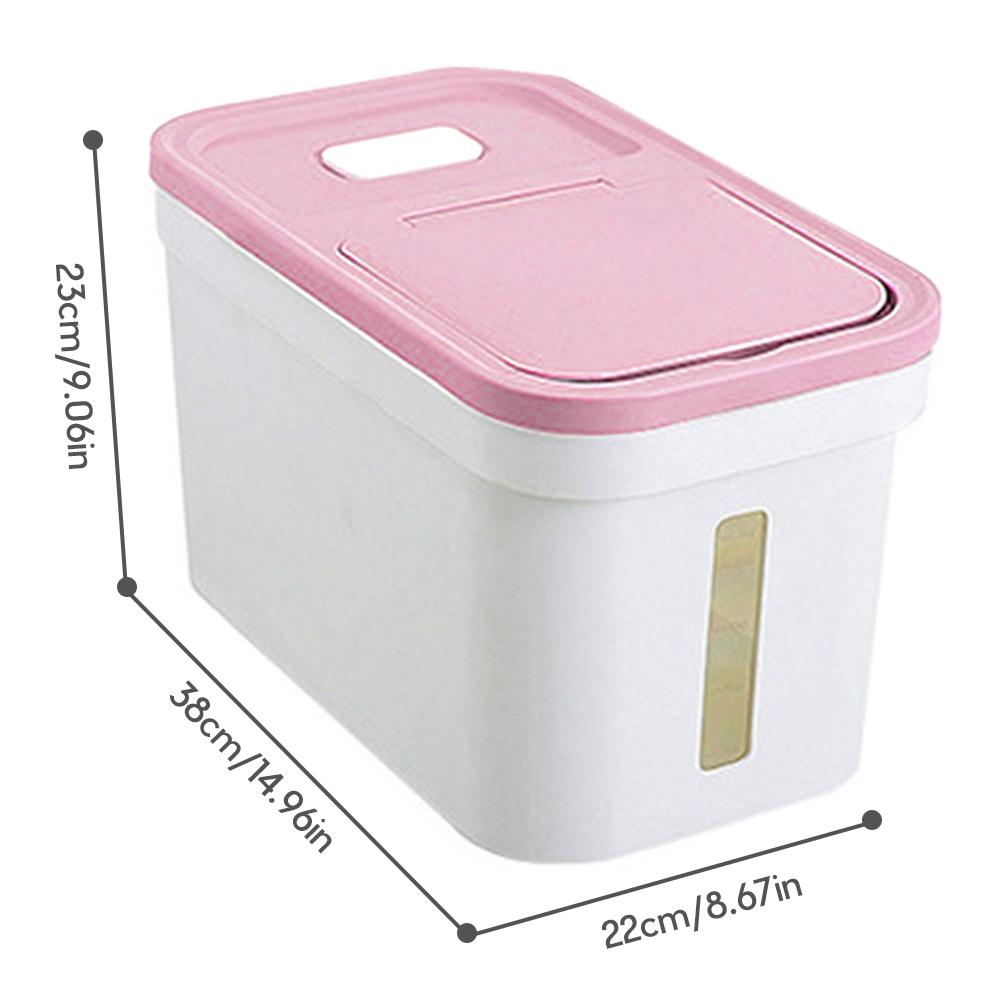 Name: Household moisture-proof rice boxMaterial: PPColor: pink , greenSummary: Insect-proof material box, visual box, clear scale