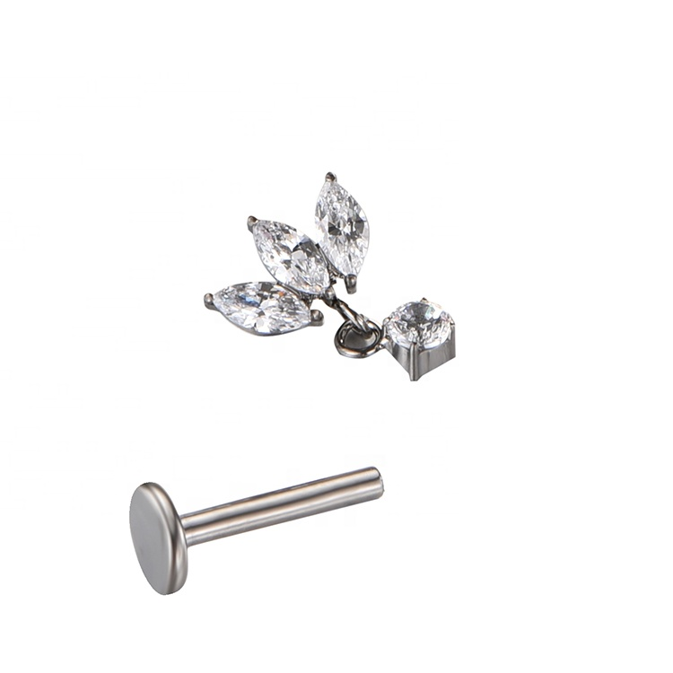 Right Grand Implant Grade Titanium 16G Triple Marquise CZ Internally Threaded Labret Monroe Lip Cartilage Helix Stud Earring