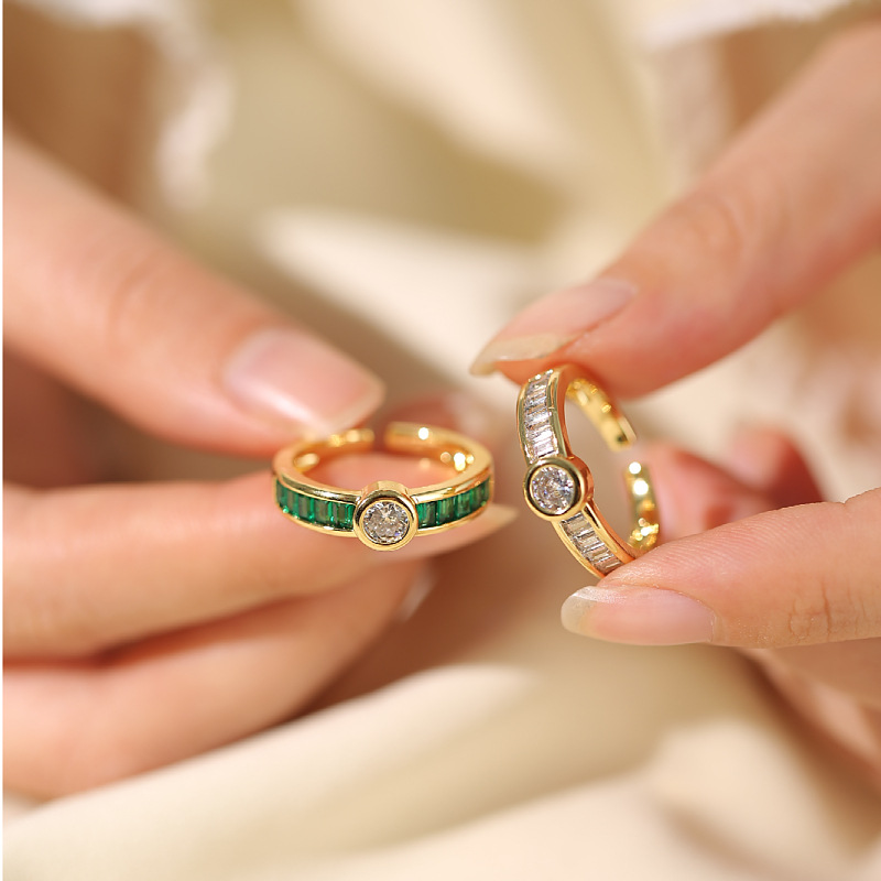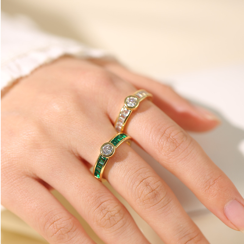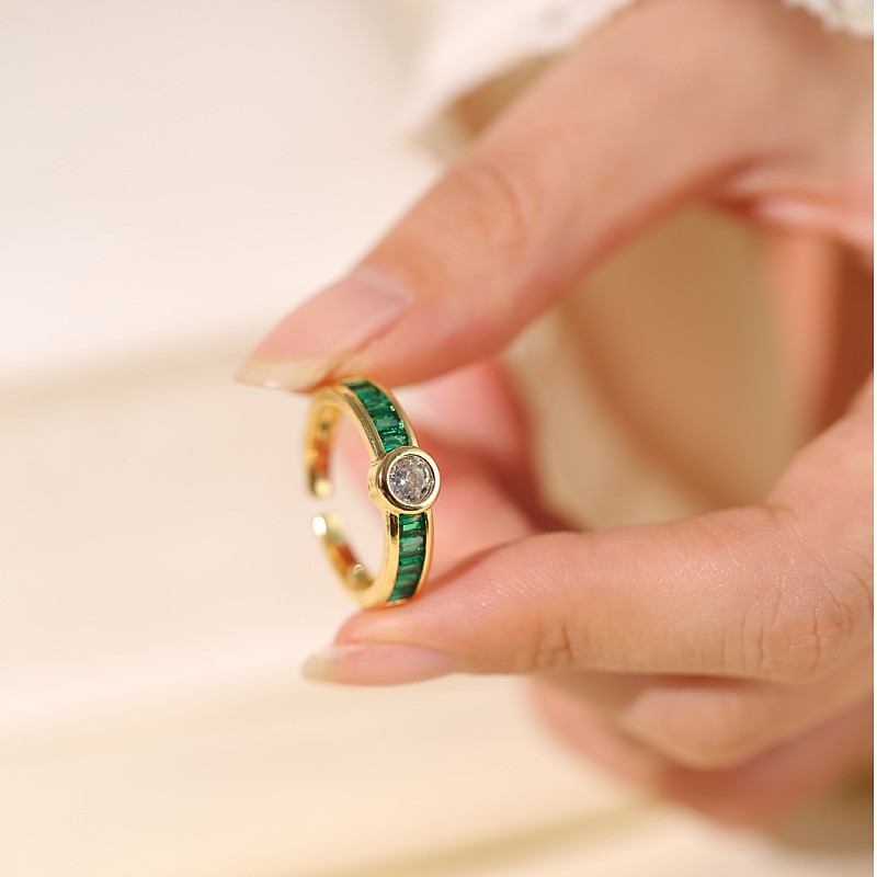 Ring Female European And American Micro Inlaid Emerald Zircon With Diamond