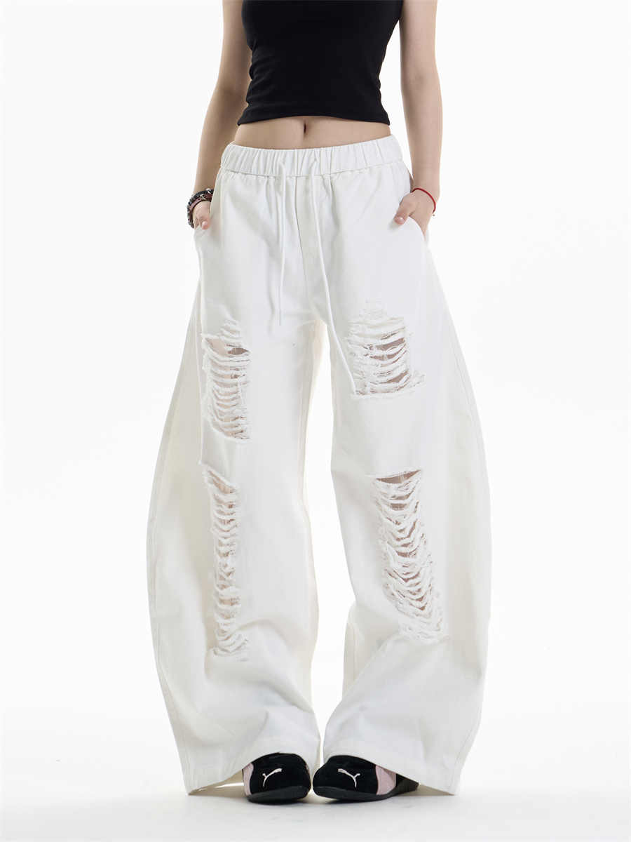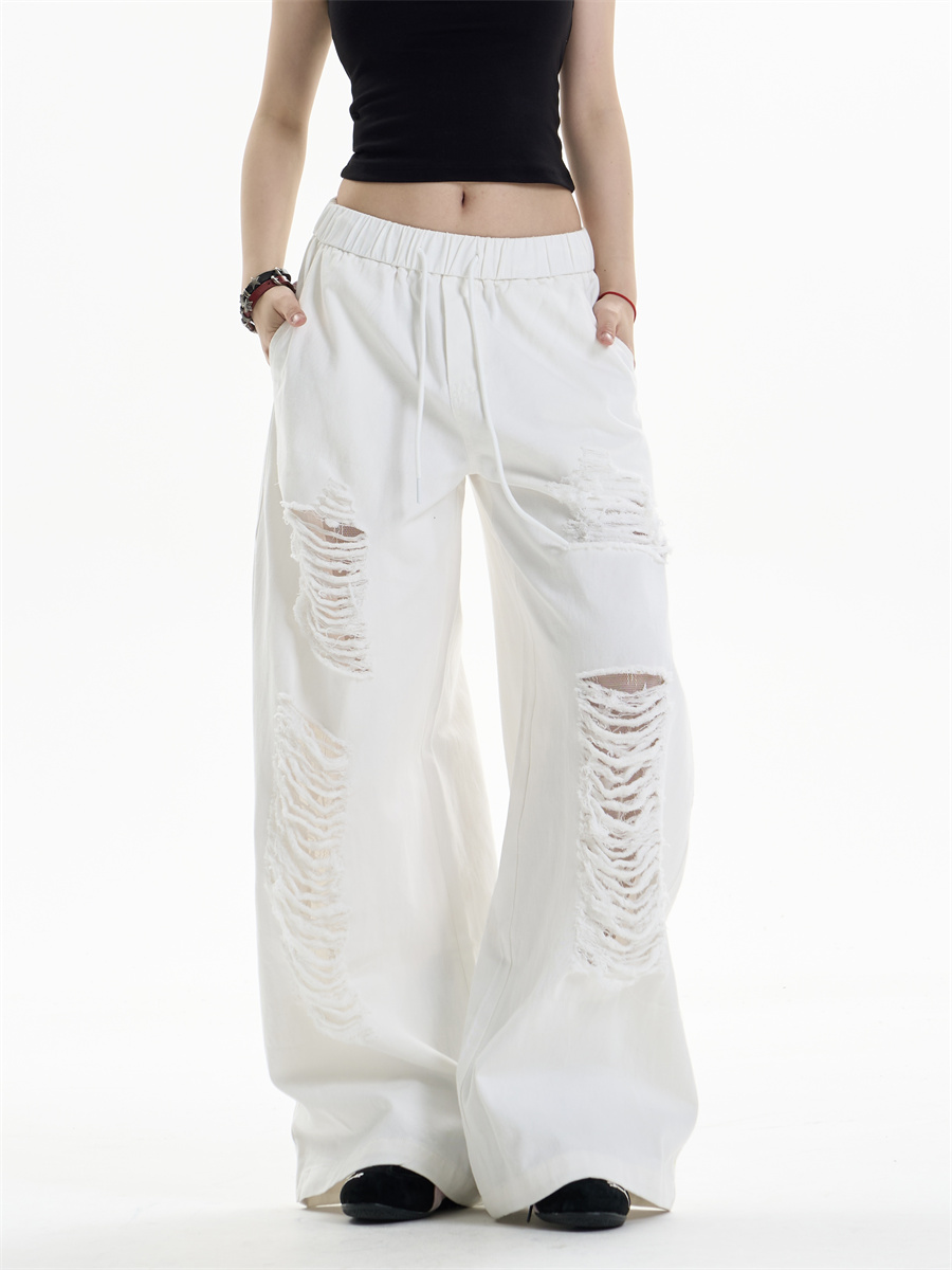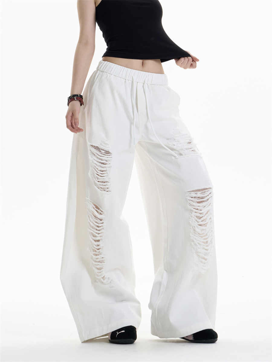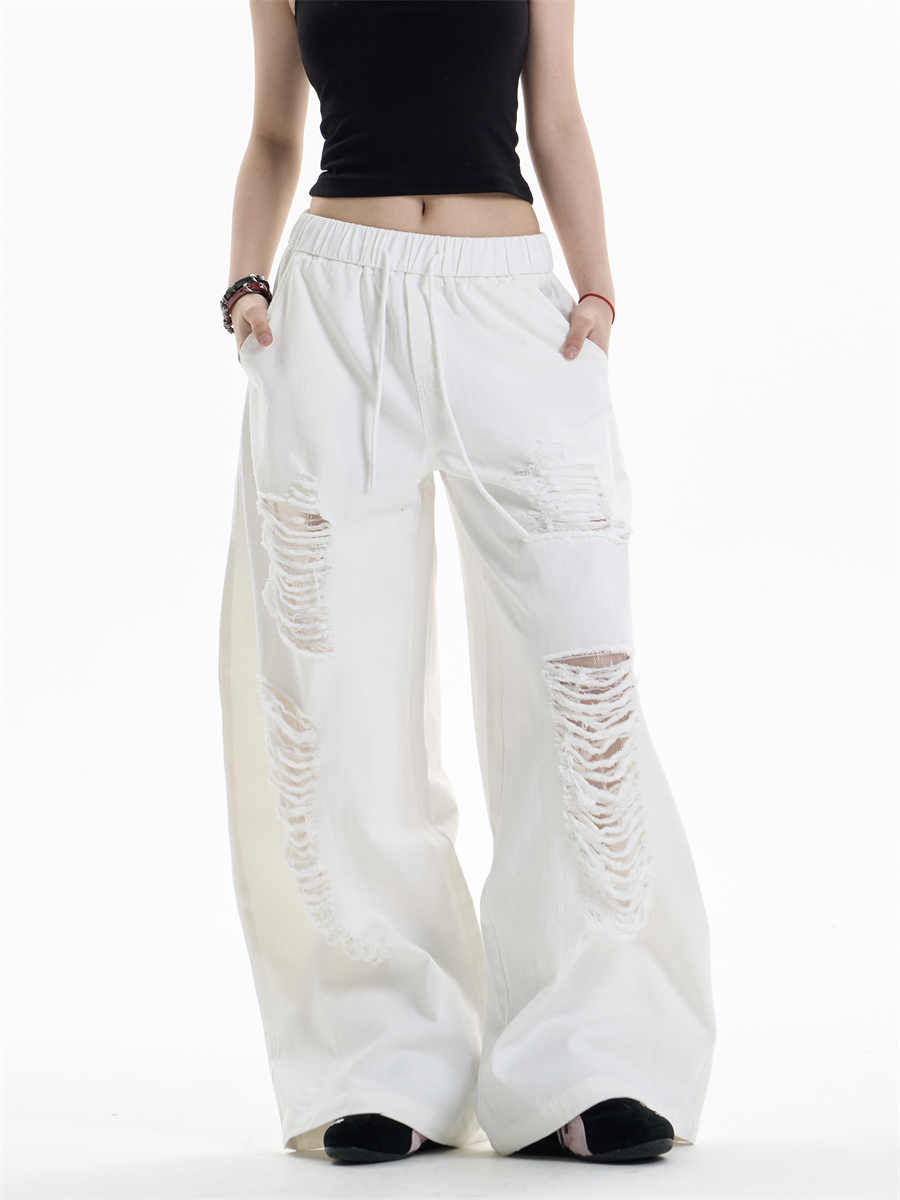 Ripped Casual Pants Women's Loose Straight Wide-leg Pants