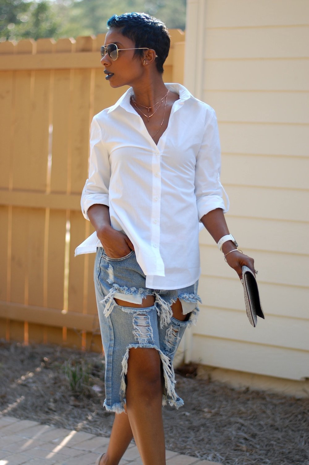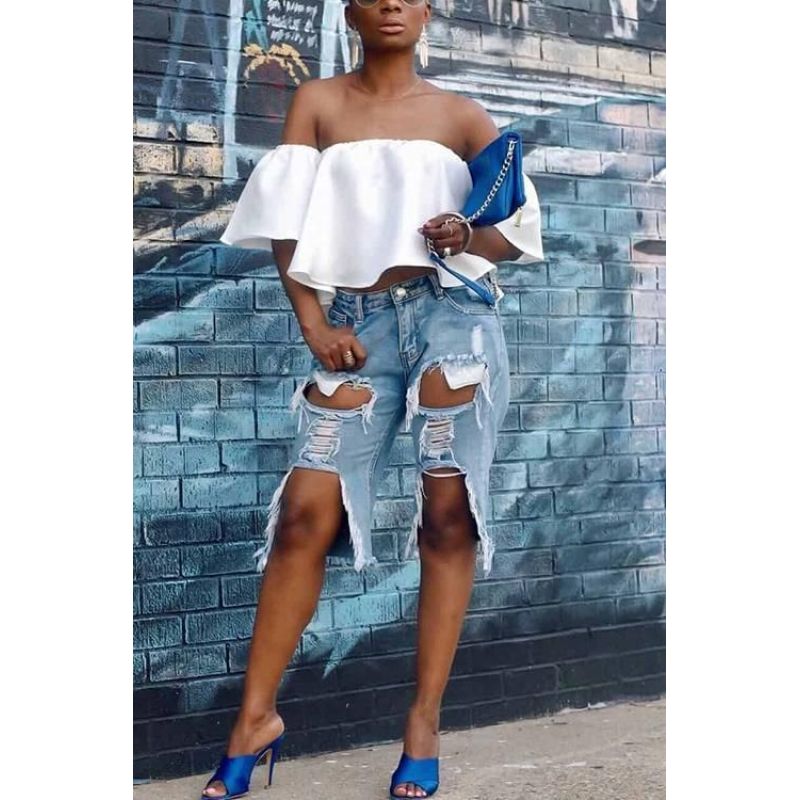 Ripped denim shorts x1