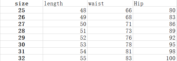 Size: 25 70-80 kg, 26 80-90 kg, 27 90-100 kg, 28 100-110 kg, 29 110-120 kg, 30 120-130 kg, 31 130-140 kg, 32 140-155 kg
