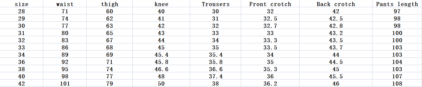 Size: 28, 29, 30, 31, 32, 33, 34, 36, 38, 40