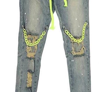 Special process: Washing, distressing, fraying, cat whiskers
