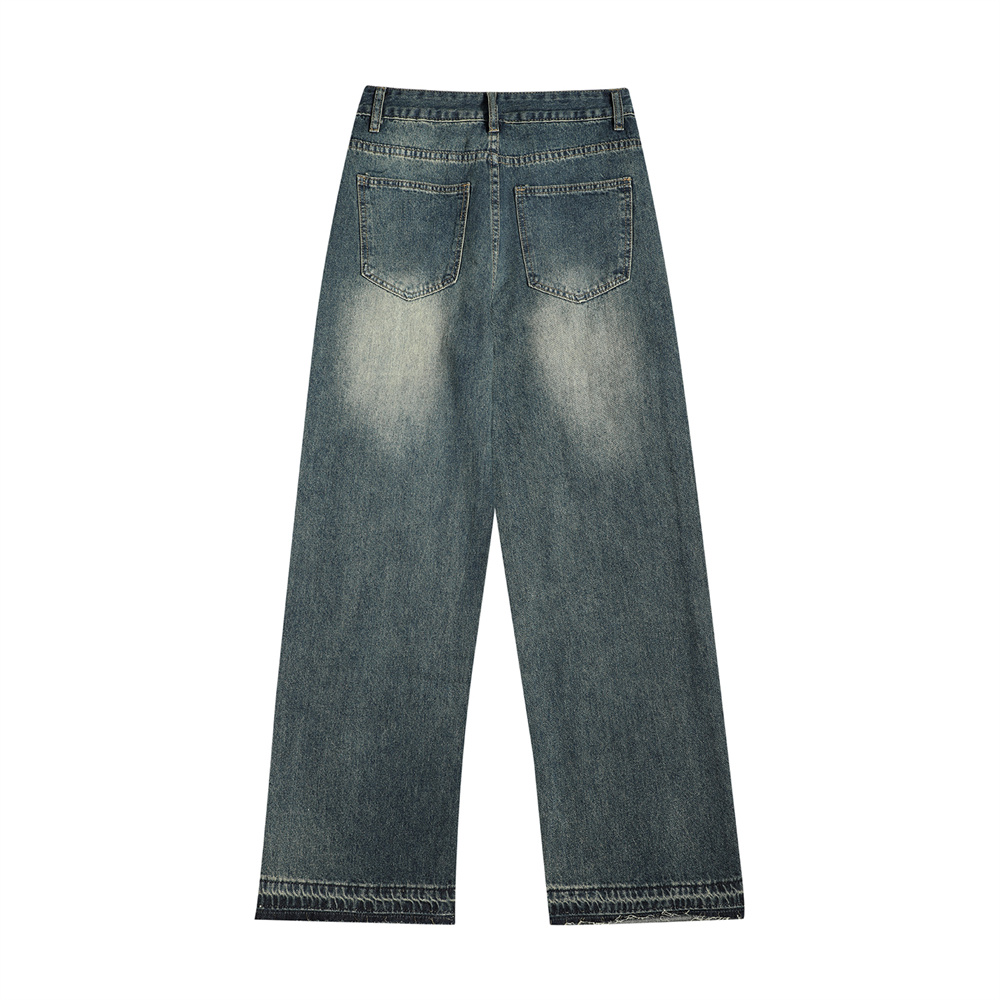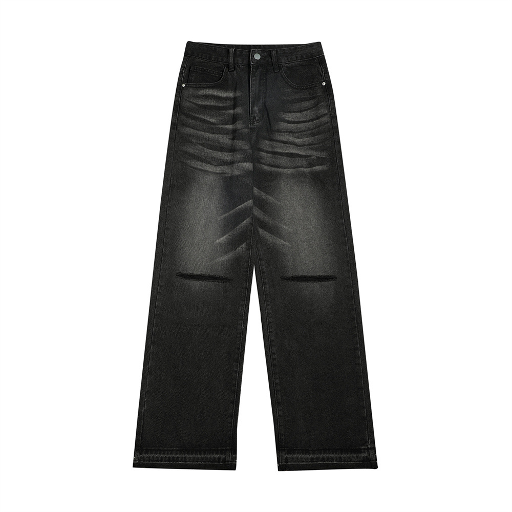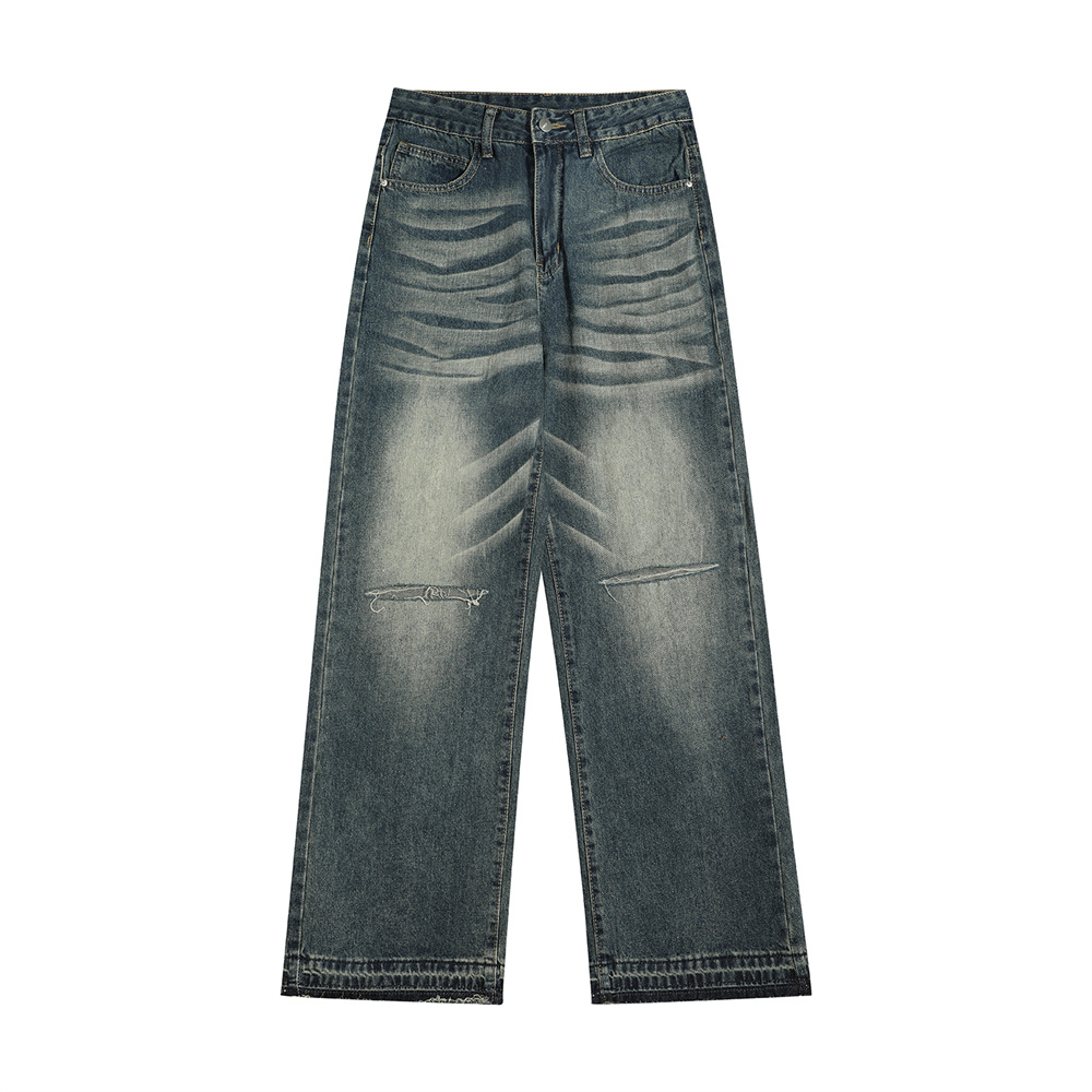 Ripped Knee Denim Straight-leg Pants Men