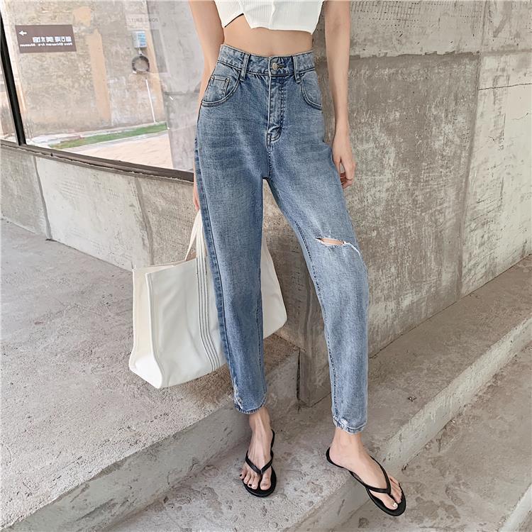 Ripped Nine-point Jeans Women's New Plus Size Fat