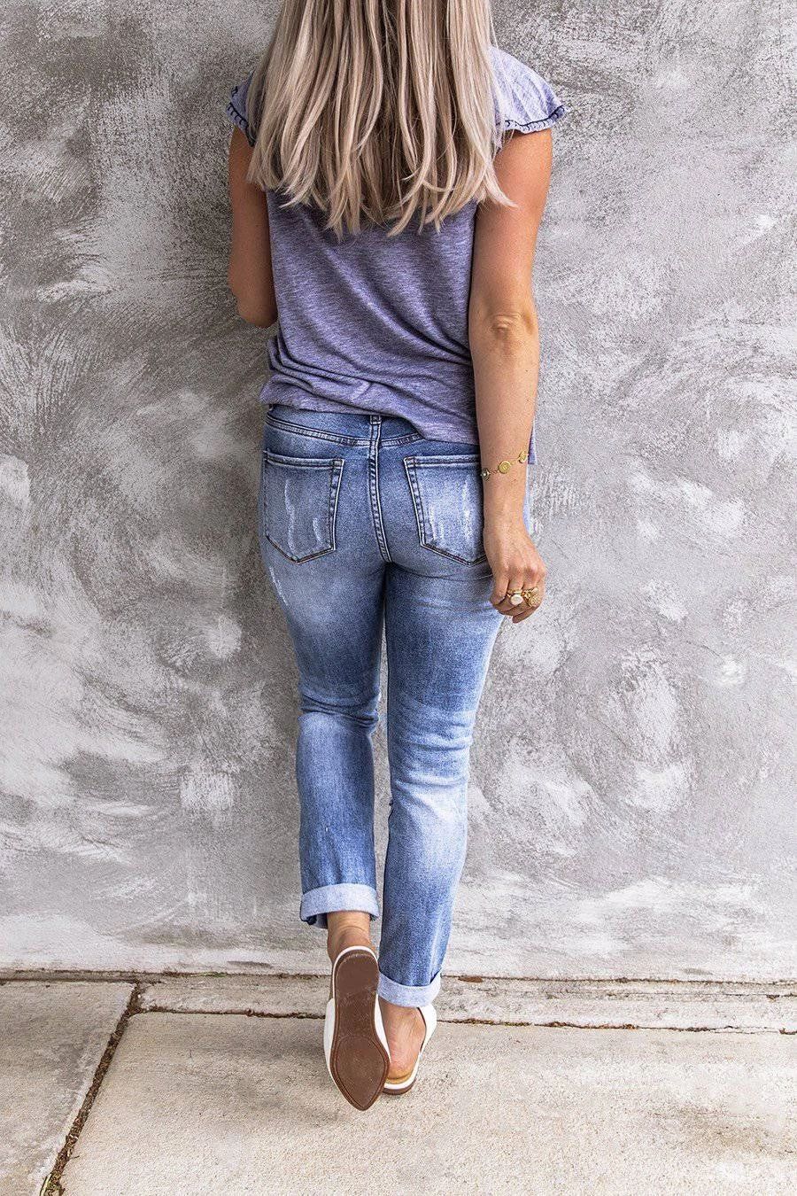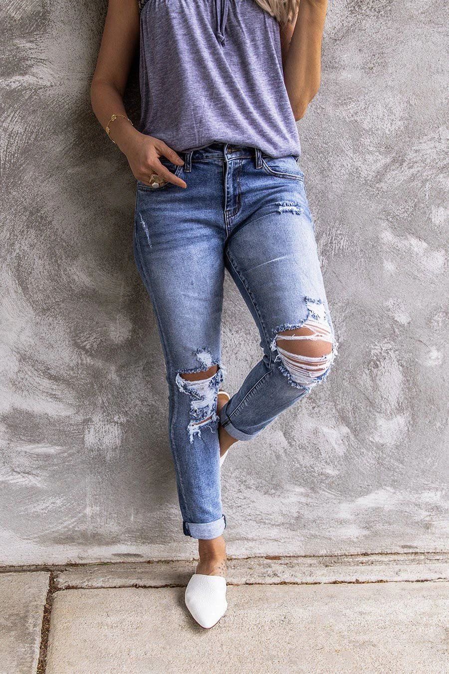 Ripped Retro Full-Jet Stretch Small Straight Jeans