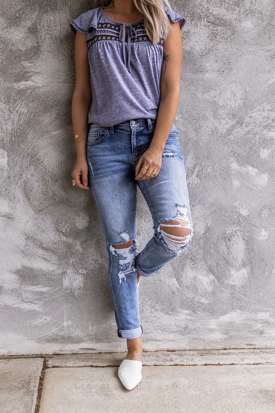 Popular elements: Distressed, polished white, hand worn