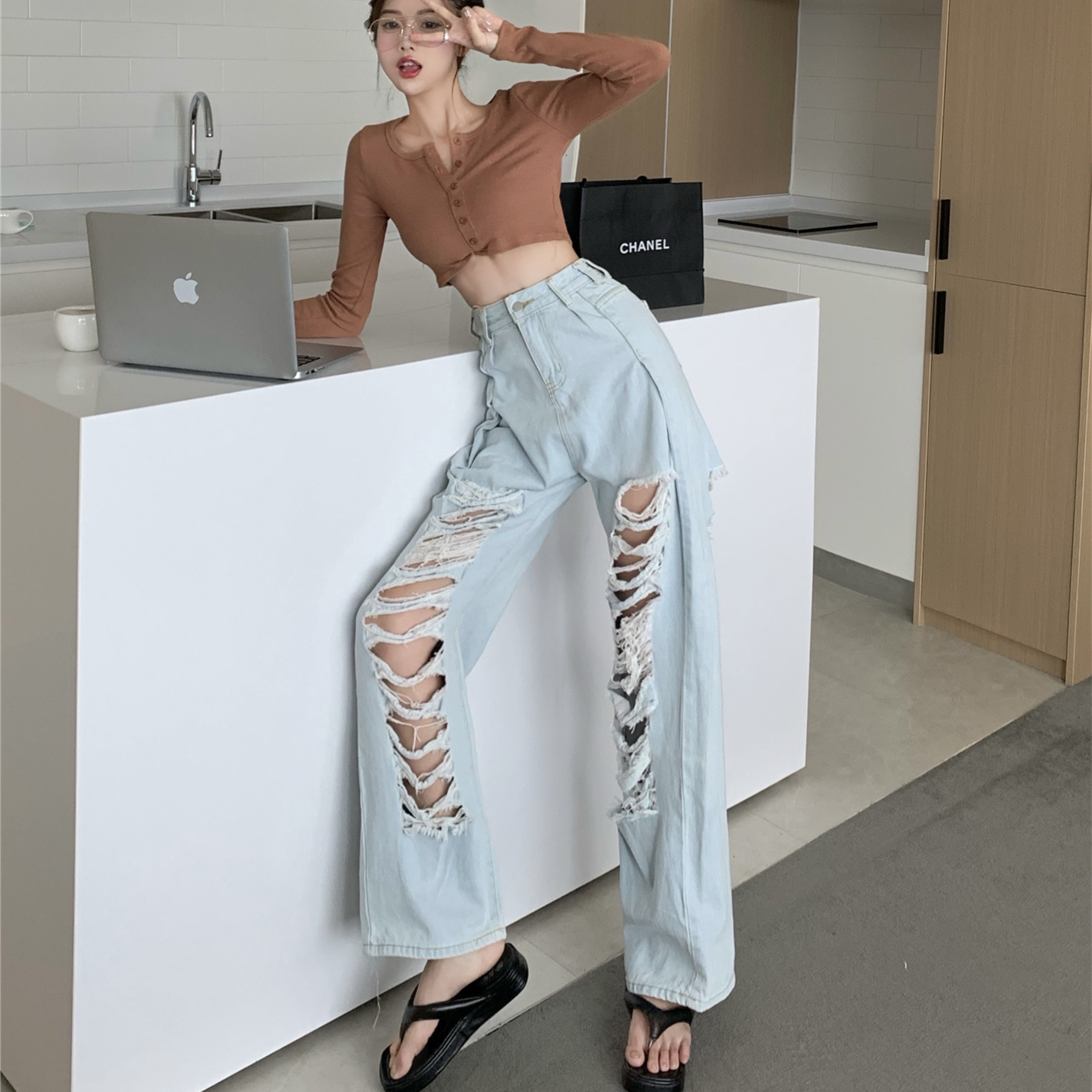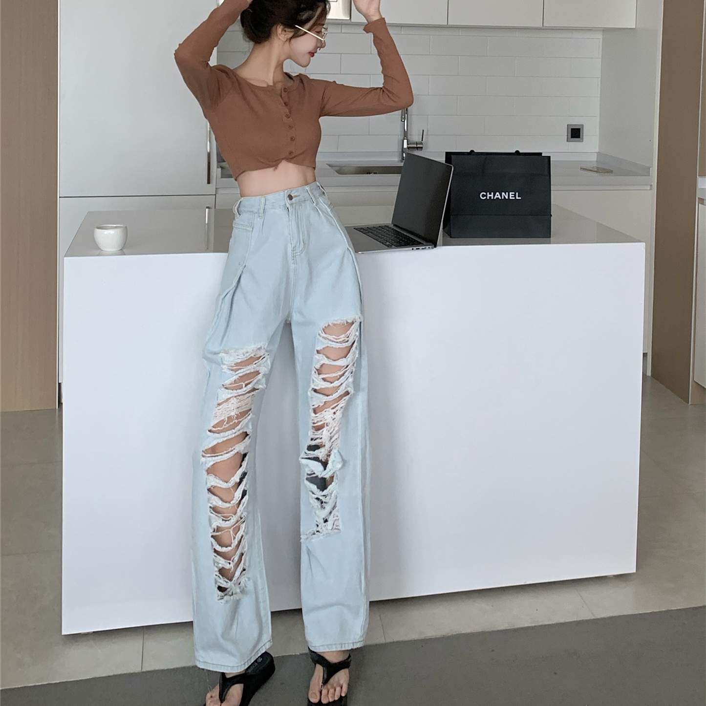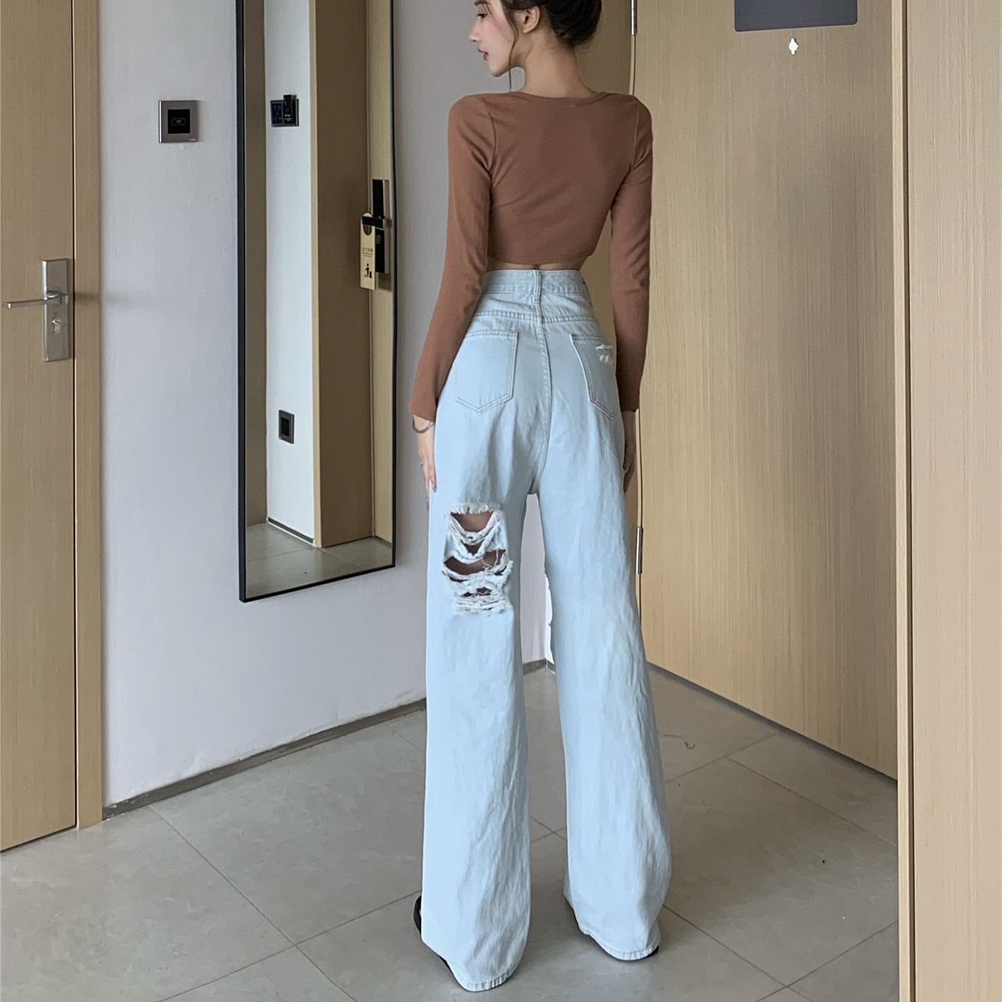 Ripped Straight High Waist Wide Leg Pants Loose Mopping