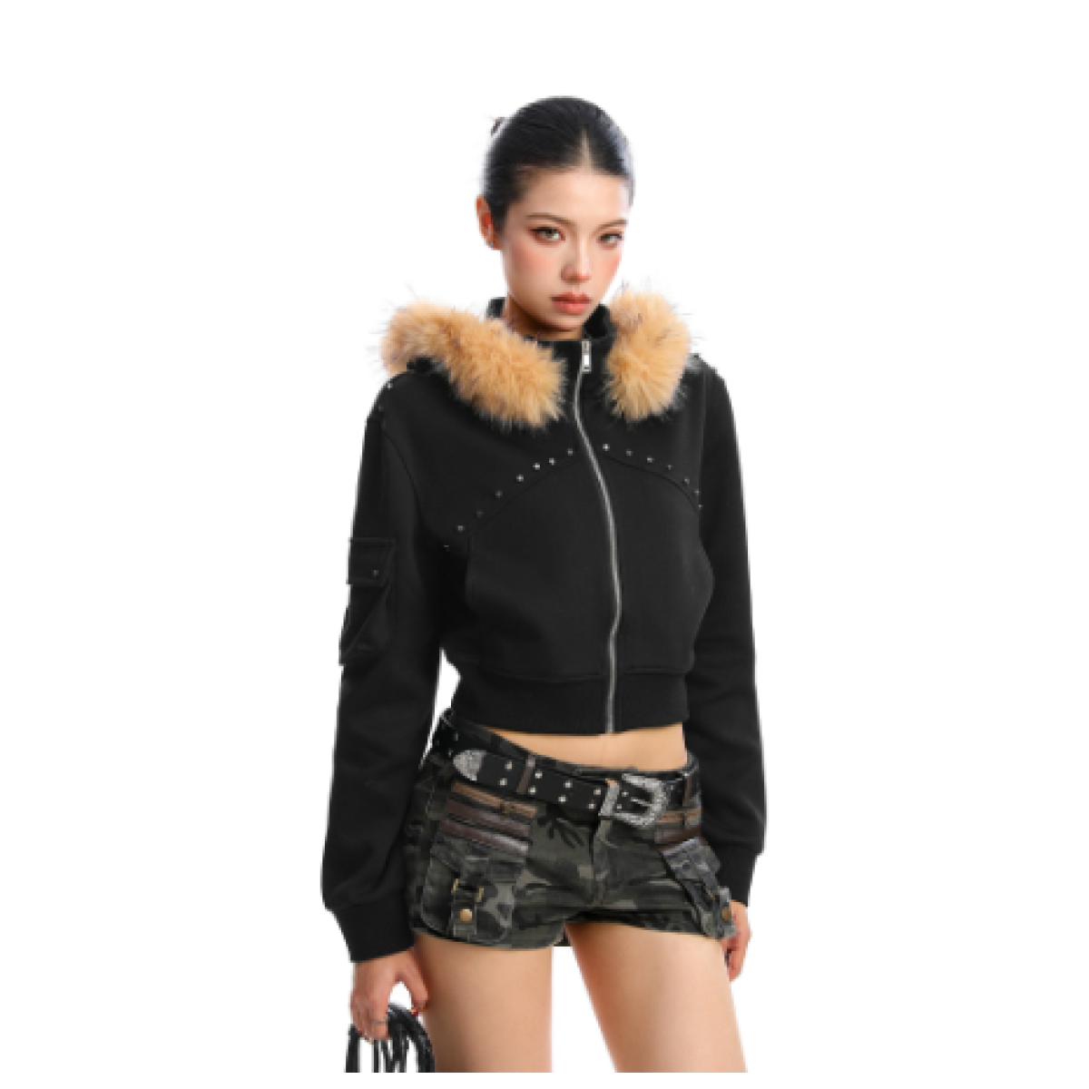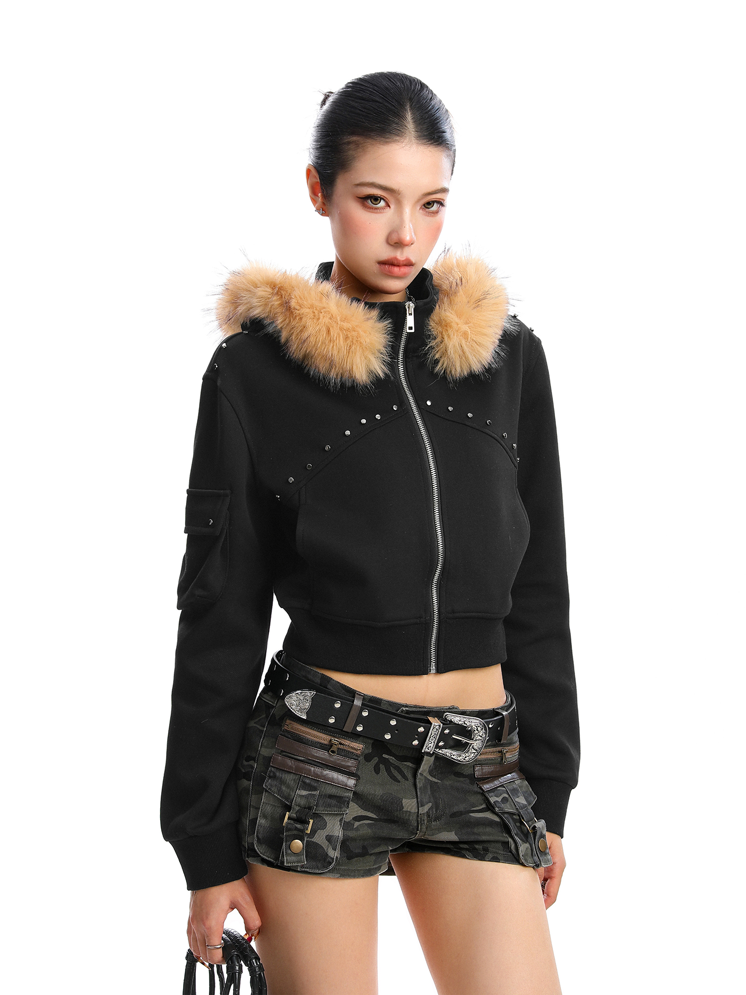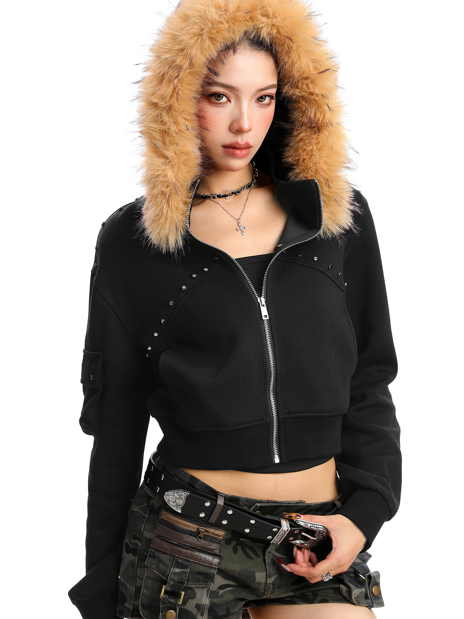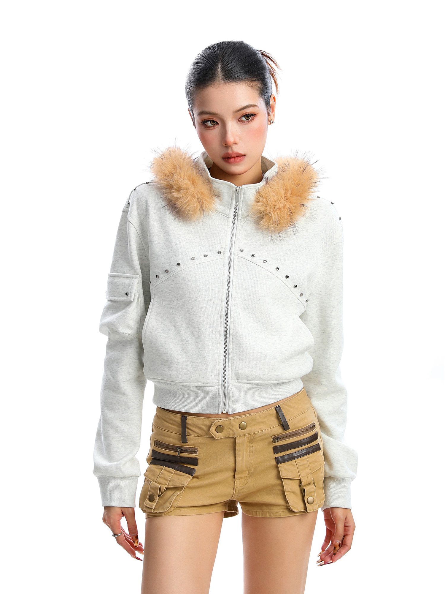 Rivet Detachable Fur Collar Stand Collar Sweater