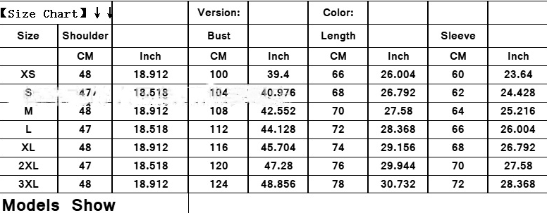 Note: 1. Asian sizes are 1 to 2 sizes smaller than European and American people. Choose the larger size if your size between two sizes. Please allow 2-3cm differences due to manual measurement. 2. Please check the size chart carefully before you buy the item, if you don't know how to choose size, please contact our customer service. 3.As you know, the different computers display colors differently, the color of the actual item may vary slightly from the following images.