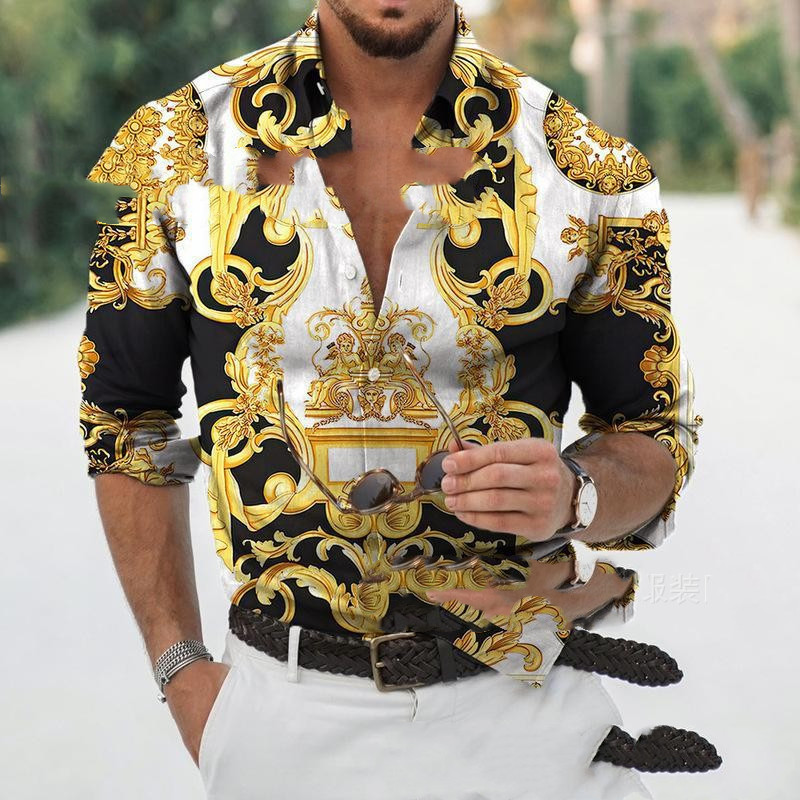 Rock Print Long Sleeve Shirt Hawaiian Loose Large Size Trendy Top