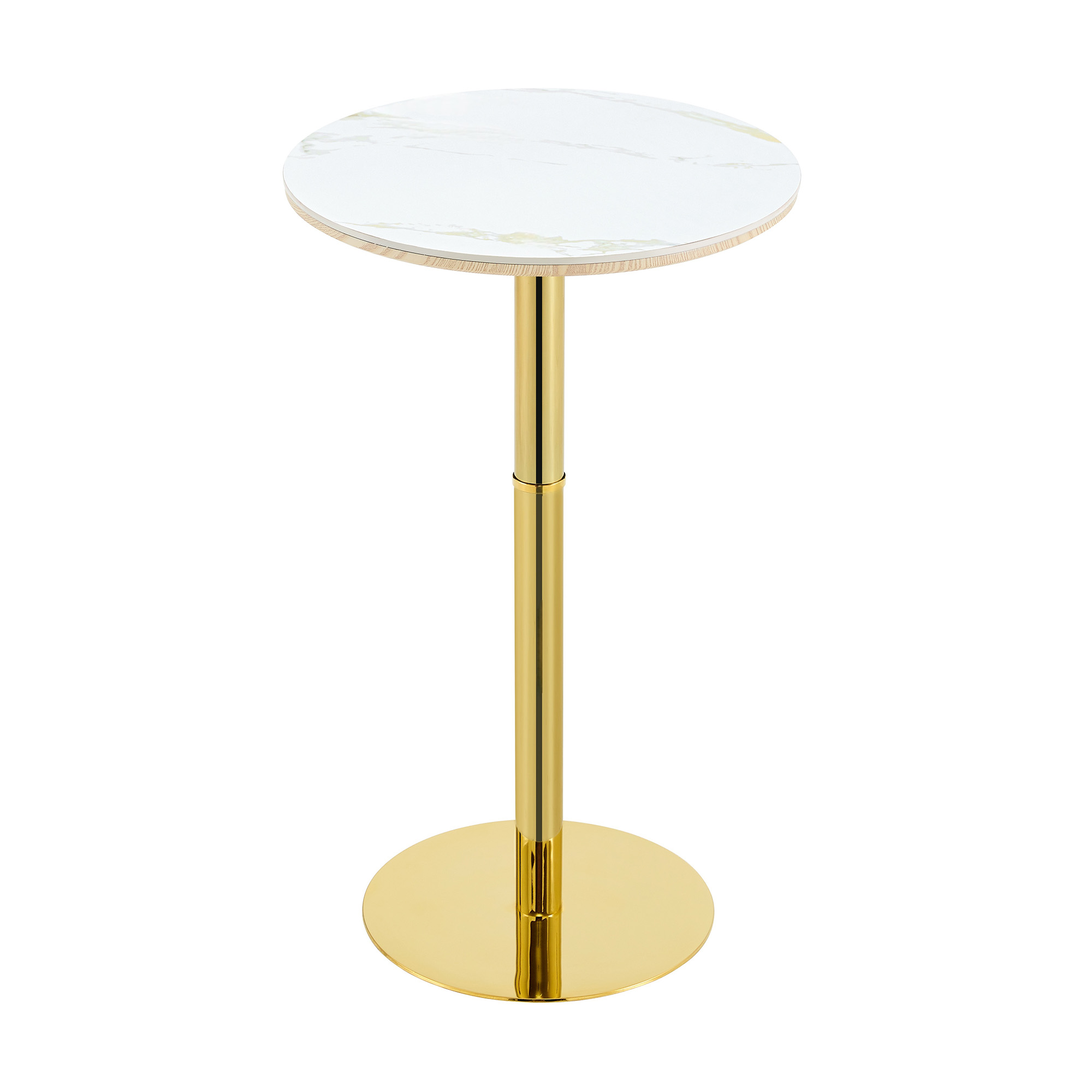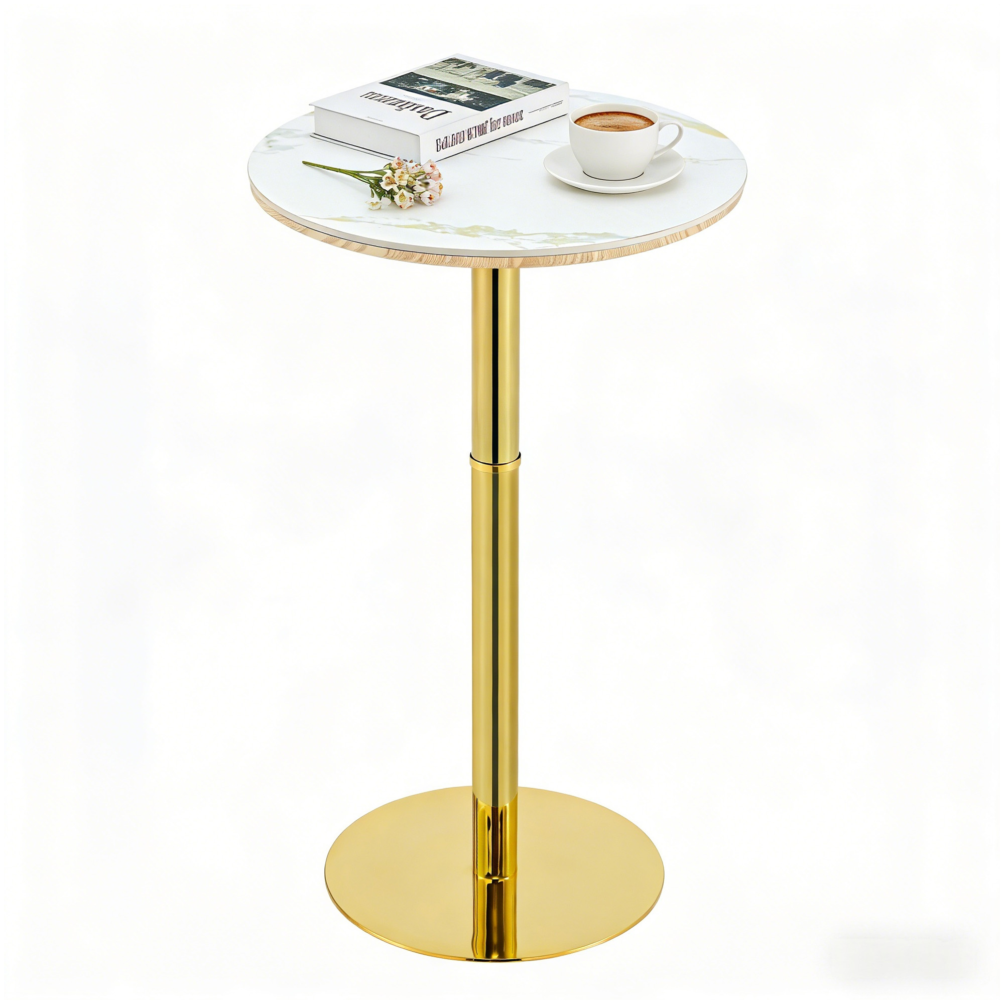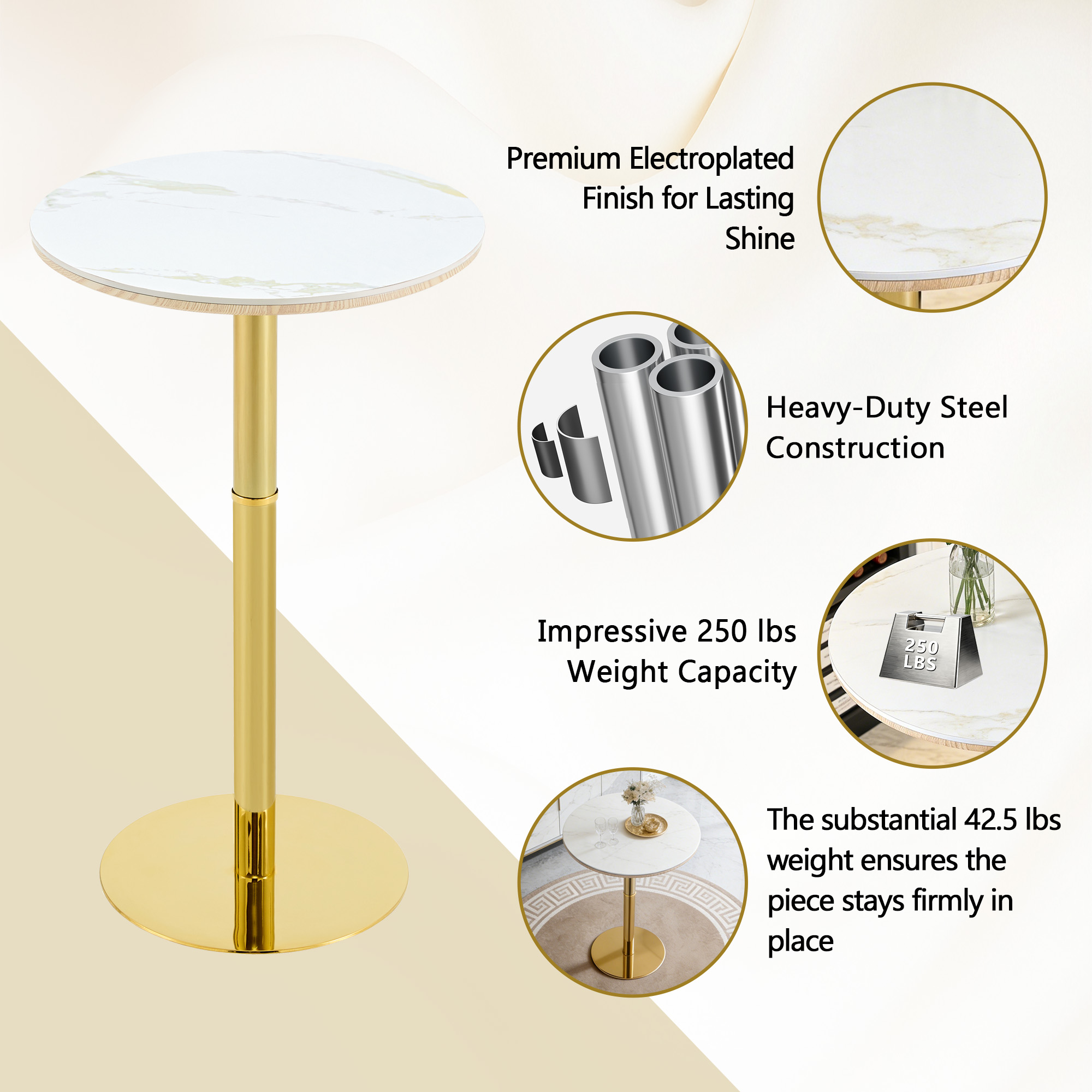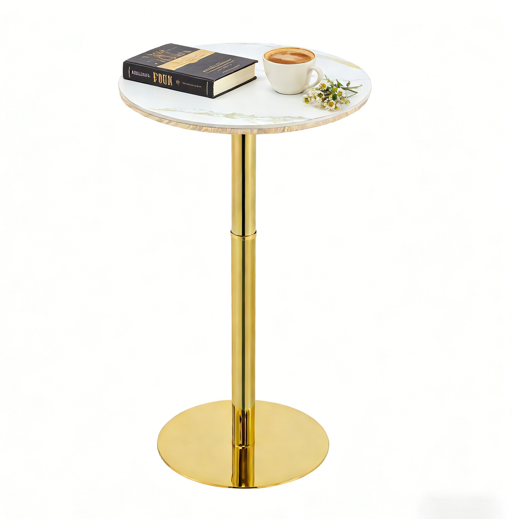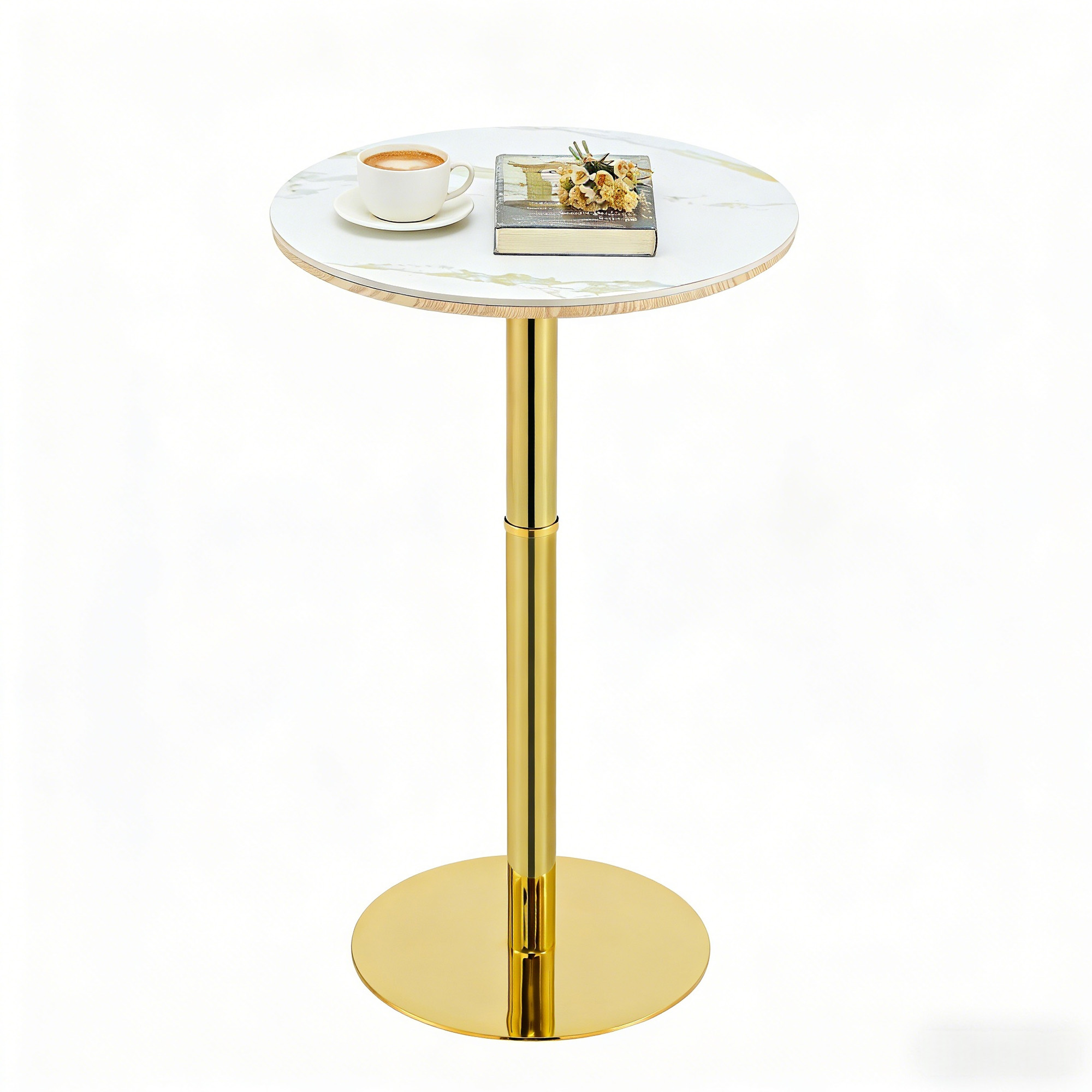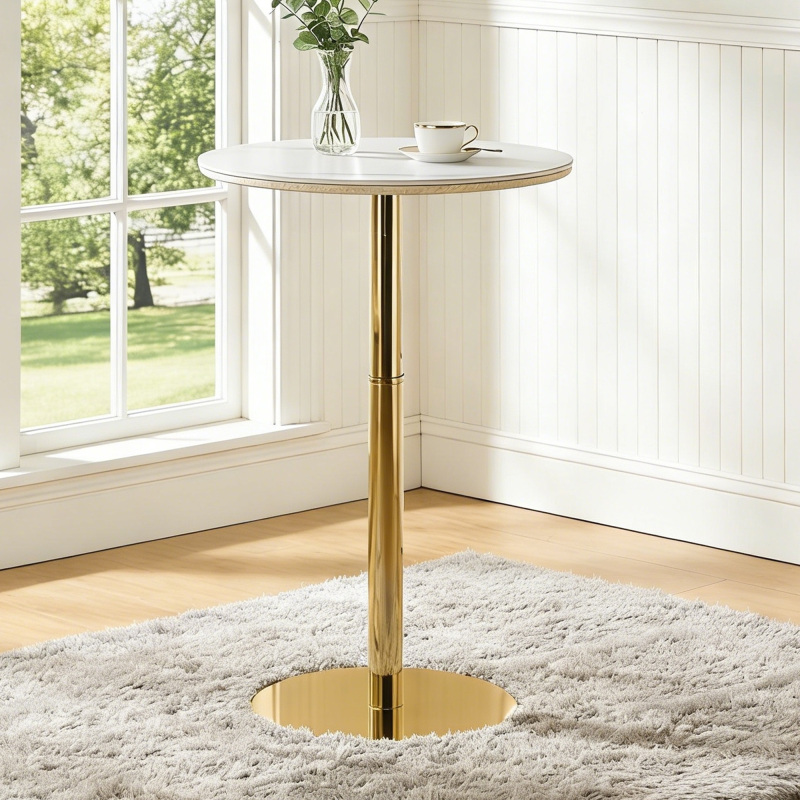 Product Name:Rock slab circular tabletop non adjustable (39.5 inches high) bar table, bar table with gold legs and base (white+gold)