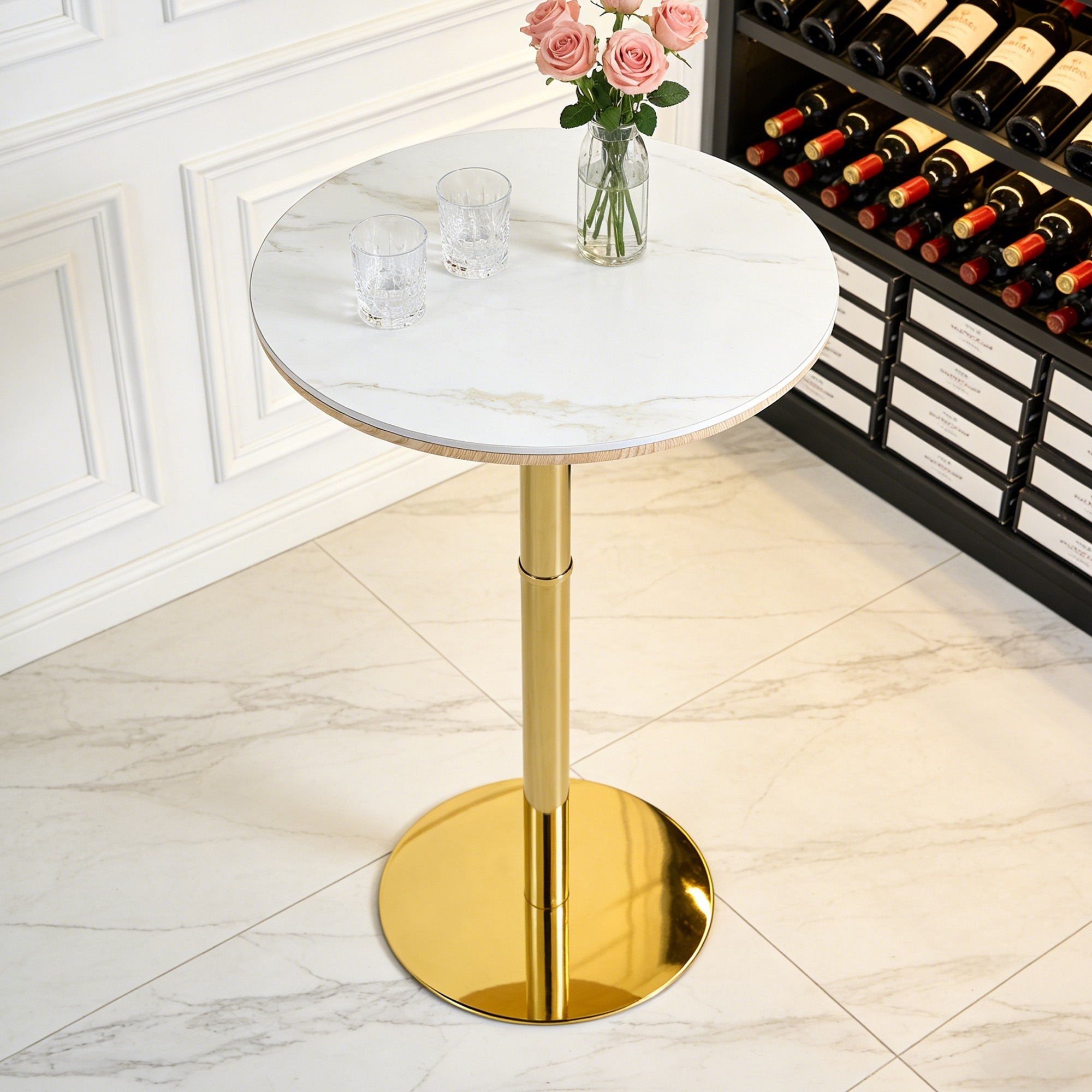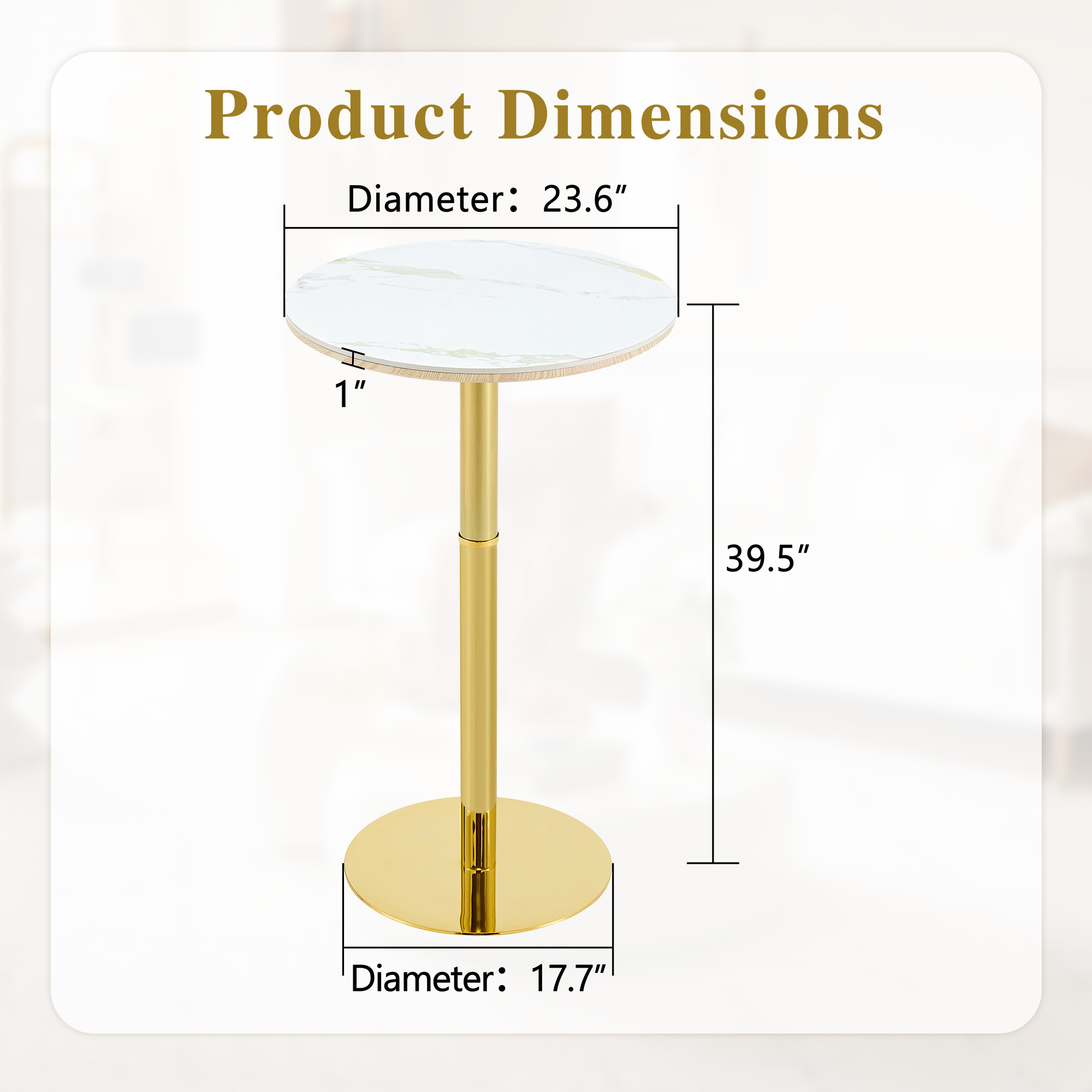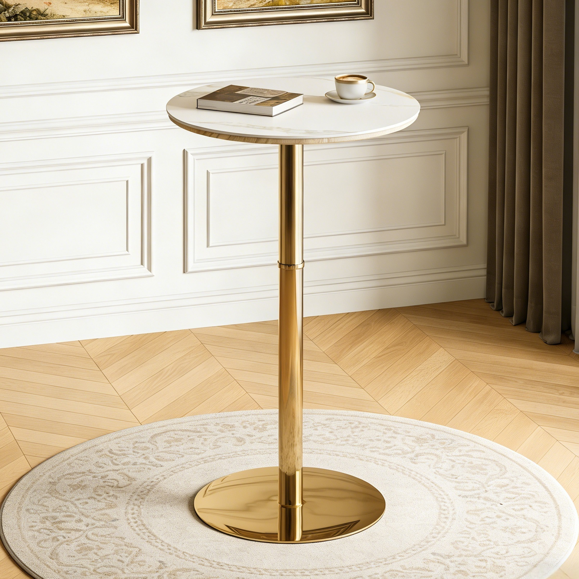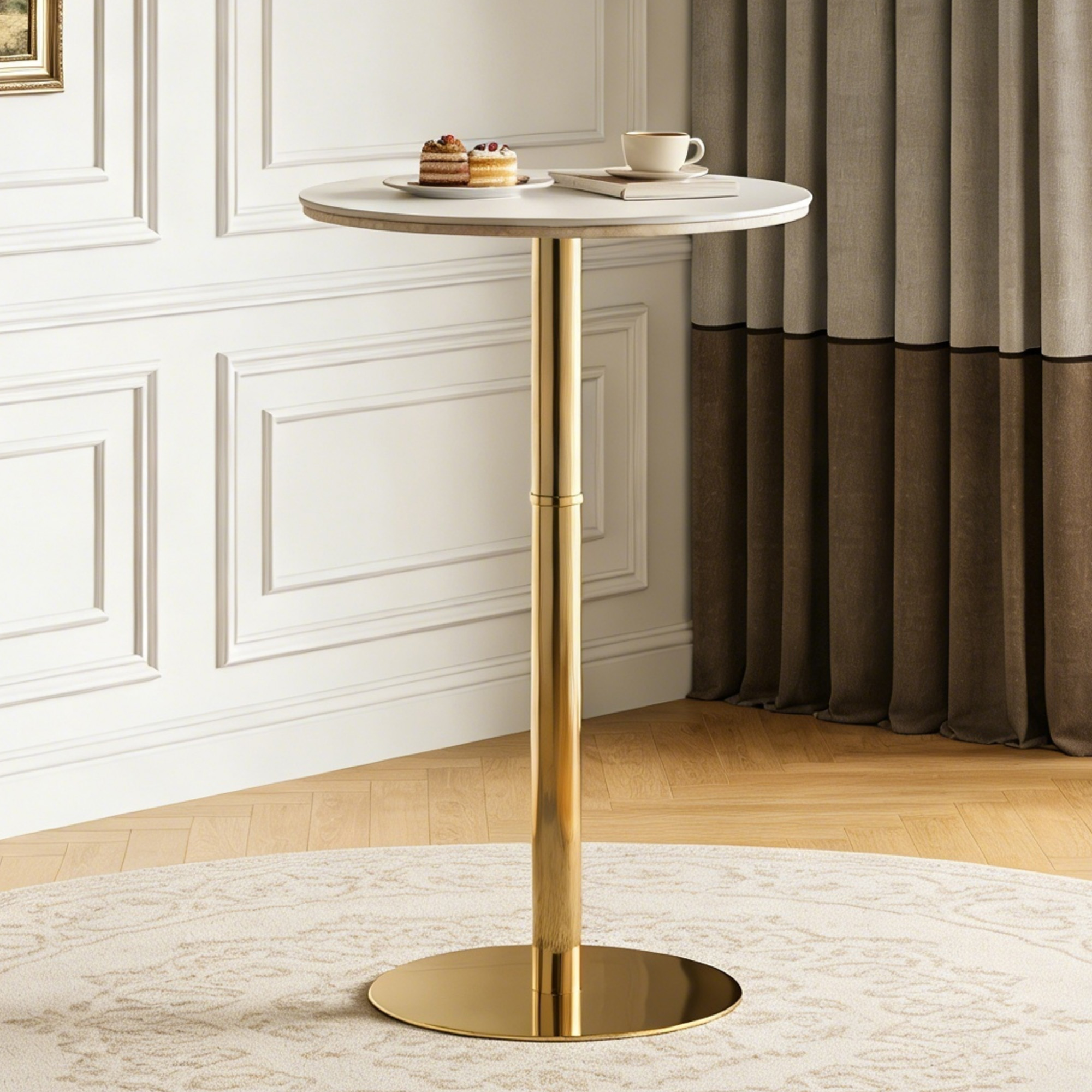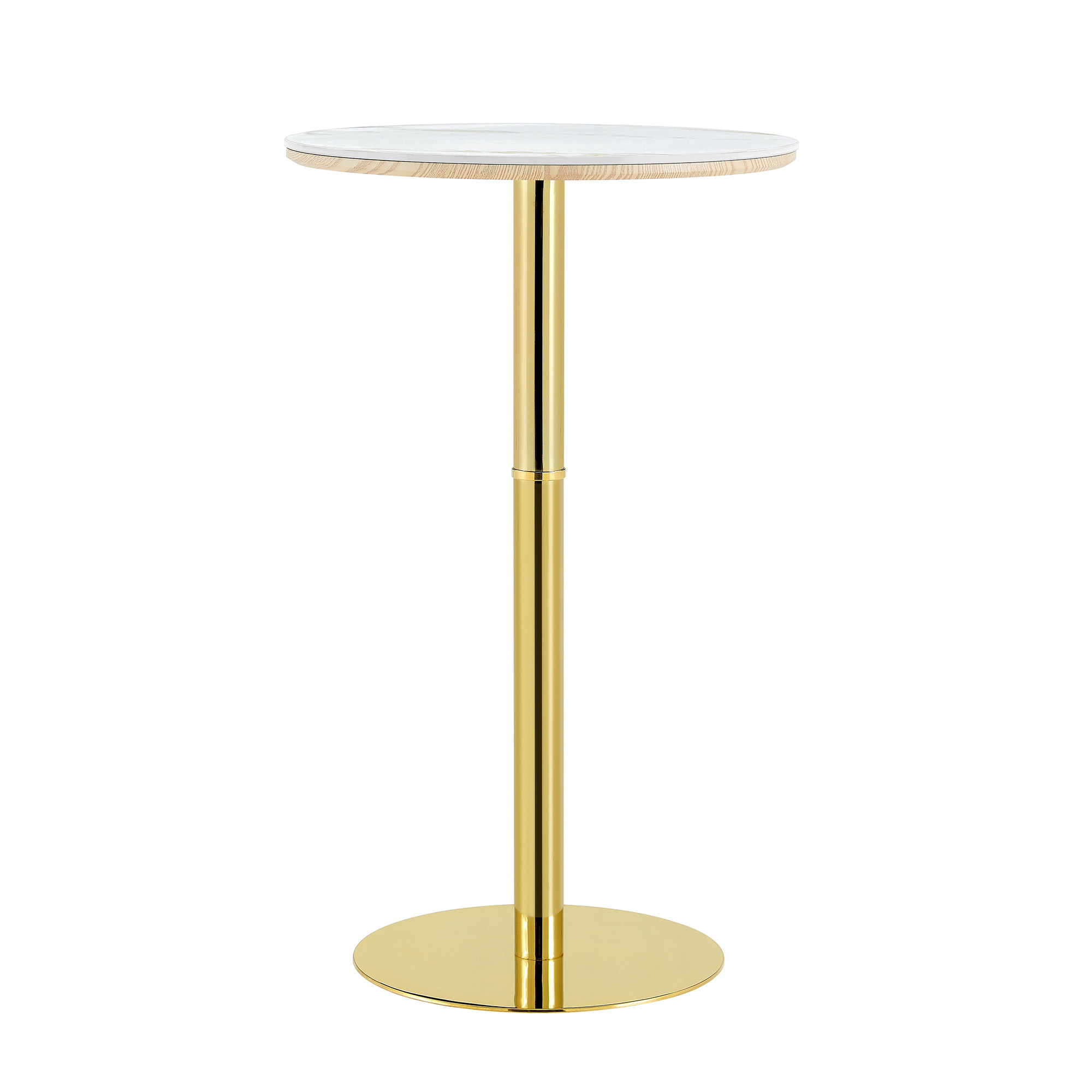 Product Name:Rock slab circular tabletop non adjustable (39.5 inches high) bar table, bar table with gold legs and base (white+gold)