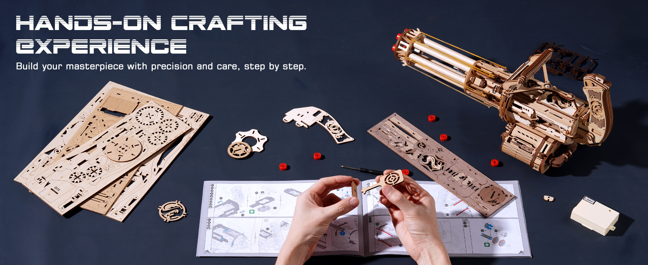 A rewarding challenge for experienced hobbyists. This 412-piece kit requires approximately 6.5 hours of focused assembly. The precision laser-cut wooden components snap together securely without glue, resulting in a robust and fully functional mechanical model.