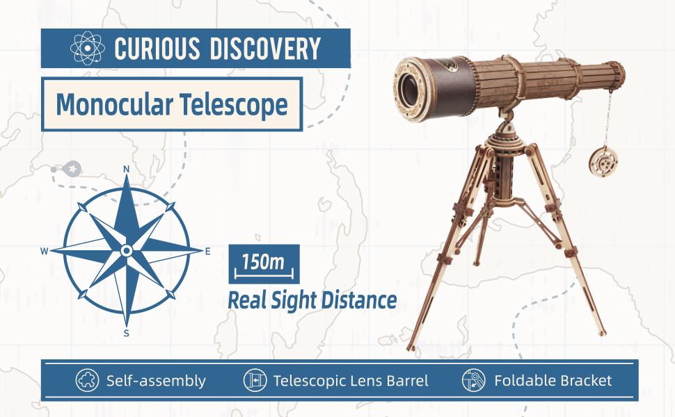 Engineered for real use with 150-meter (500ft) functional range. The adjustable lens system and solid construction provide authentic observation experience, blending model building with practical optics.