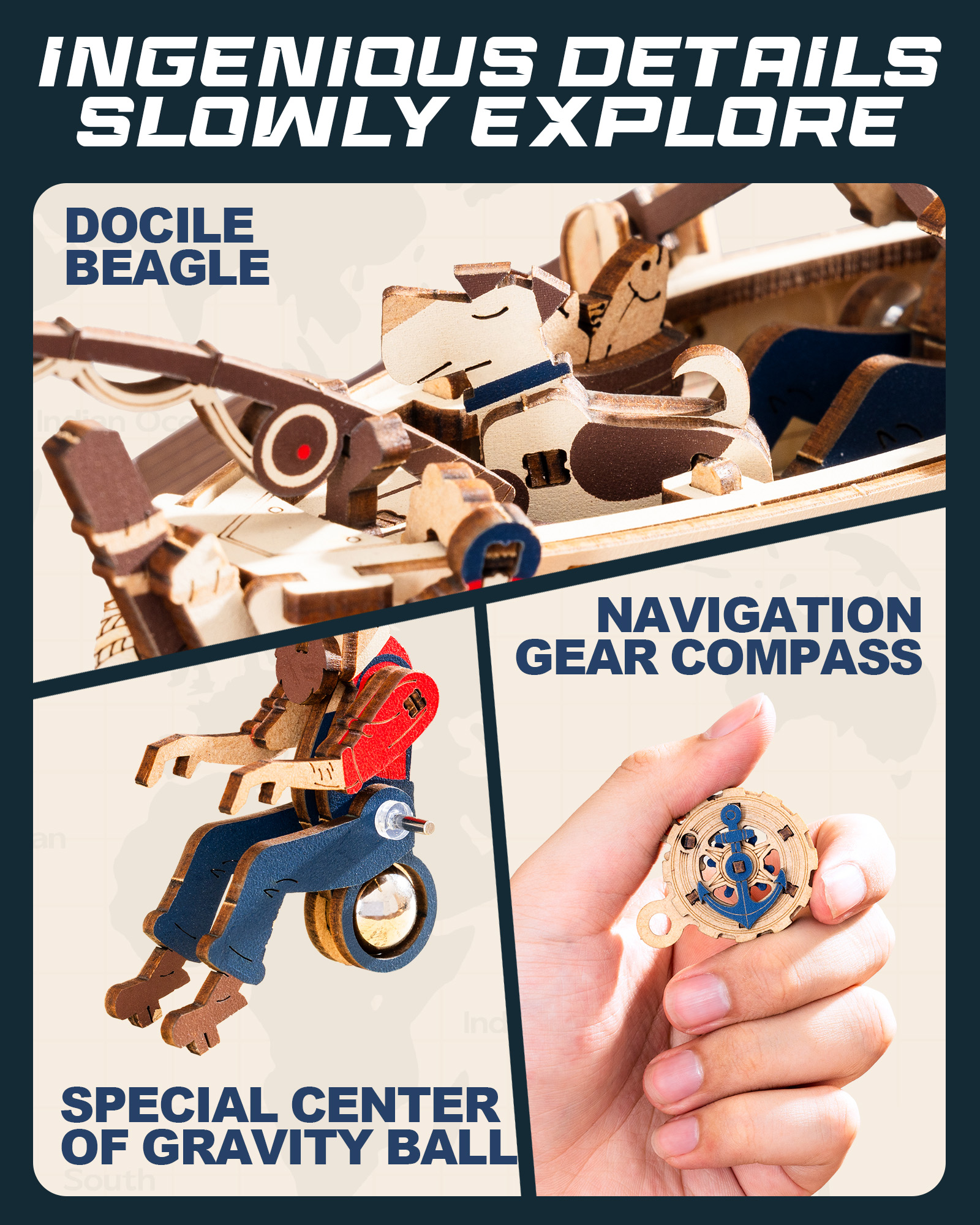 【Interactive Elements, Endless Fun】 Once assembled, you can fully enjoy the model. Adjust the rotating propeller, move the rudder, and explore the cleverly hidden drawer containing a rotating compass. These interactive features make it more than just a static display; it's an eye-catching piece that will make you talk.