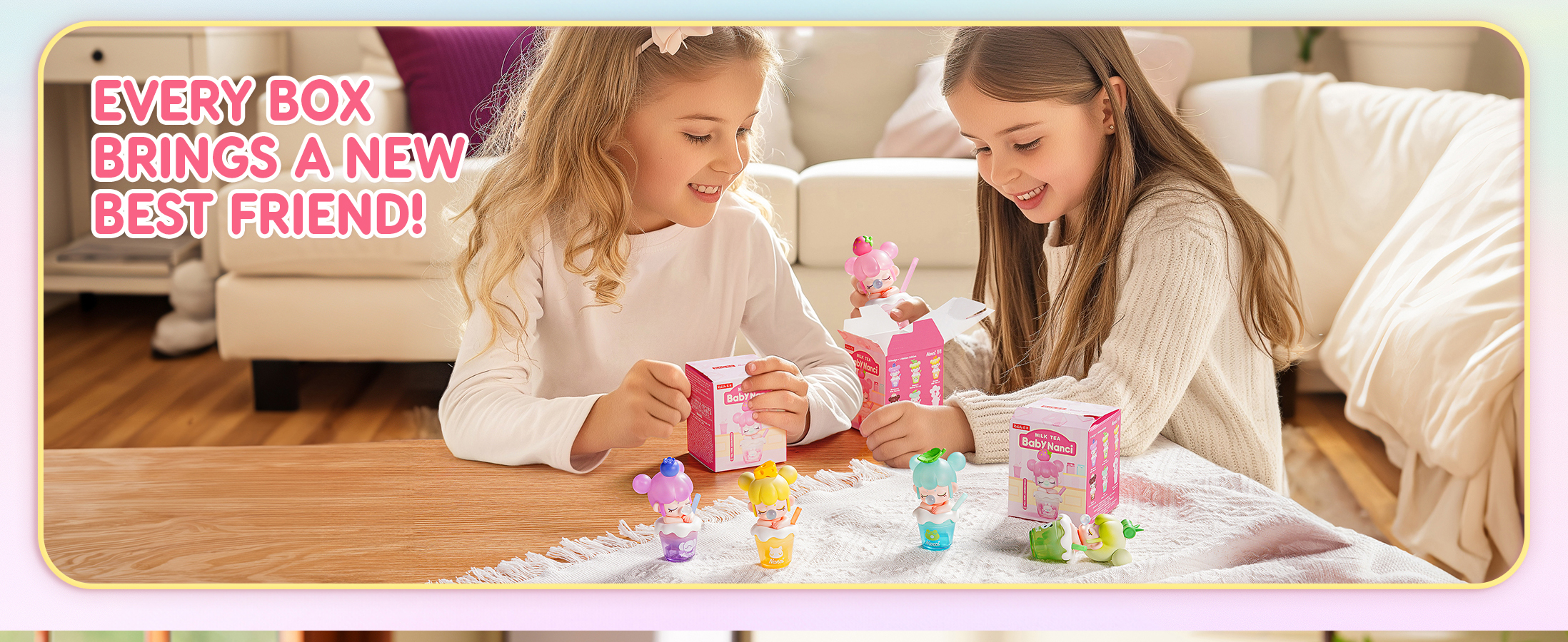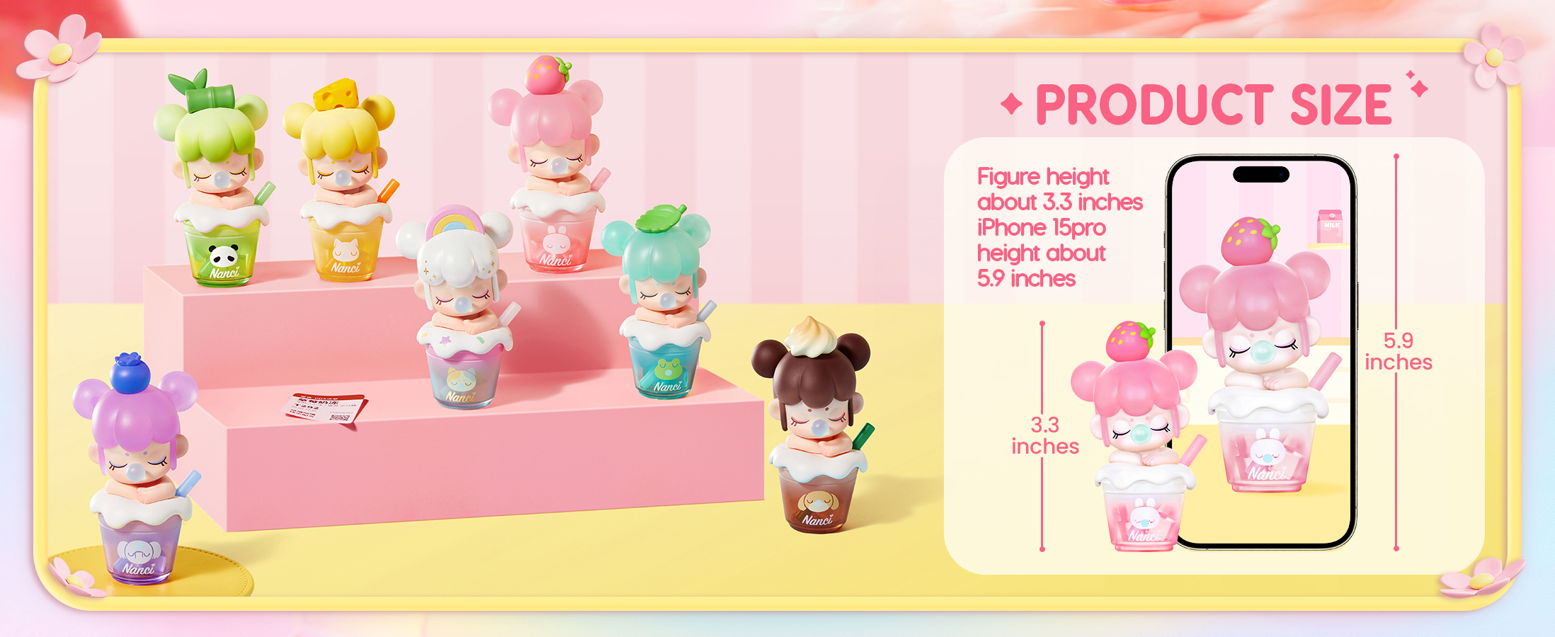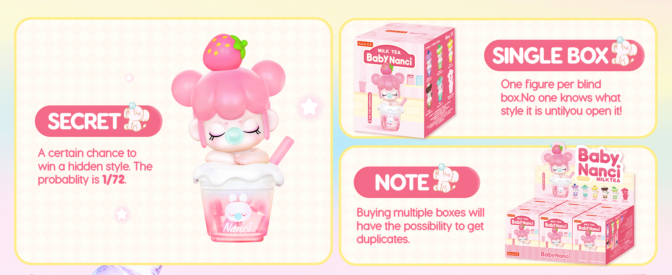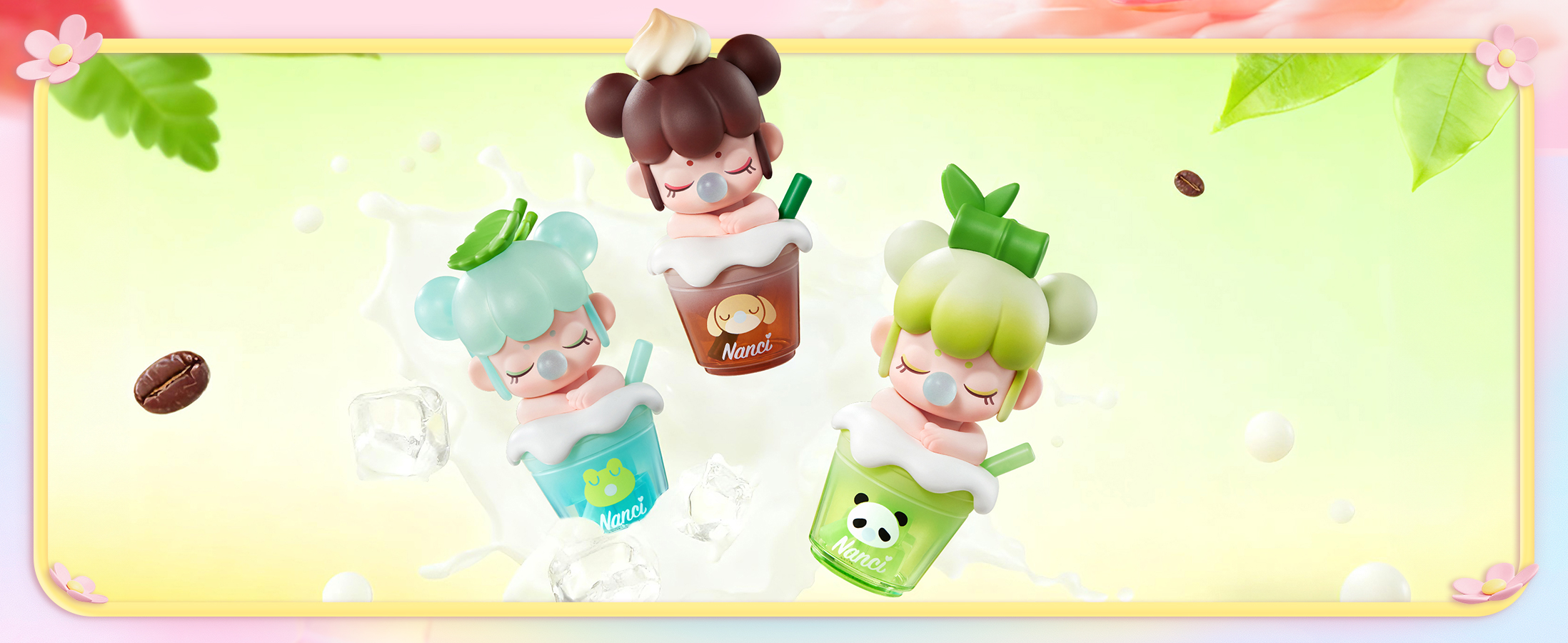 Sip into cuteness with Rolife BabyNanci Milk Tea Dolls-6 tasty cups + 1 hidden rainbow, each sparkling with glow-in-the-dark ice cubes for extra fun!