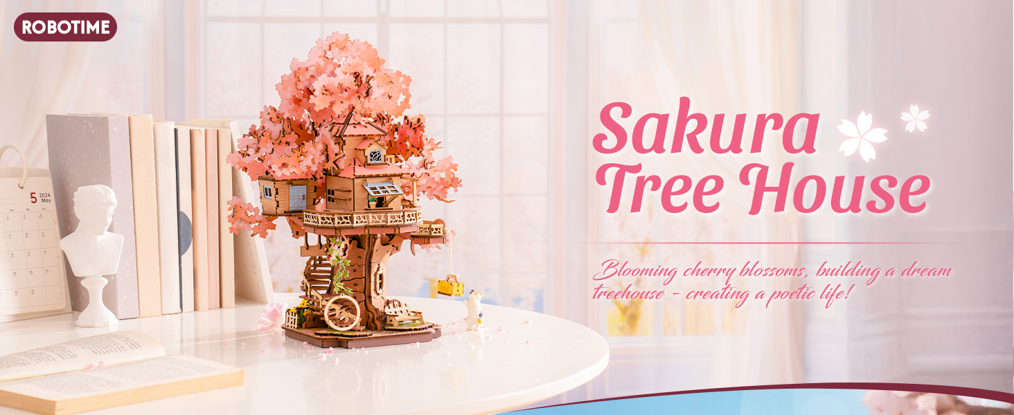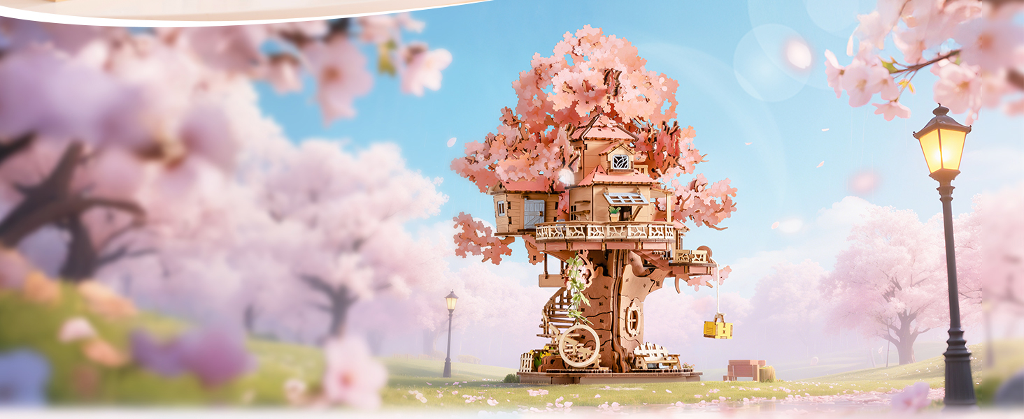 Create your own peaceful retreat with this beautifully designed Sakura Tree House. The delicate cherry blossoms, elegant swing, and spiral staircase capture the essence of traditional Japanese aesthetics, providing a soothing building experience.