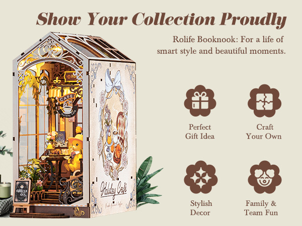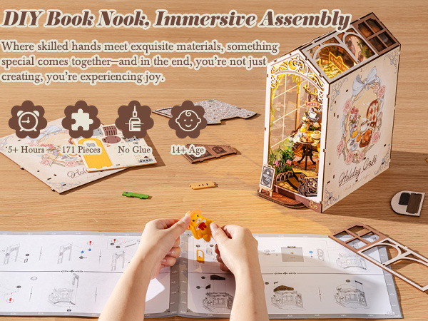 【Holiday Café Reading Corner】 Step into the tranquil rhythm of a quiet afternoon. Sunlight streams through the rose petal-decorated windows, the aroma of coffee fills the air, and a little bunny enjoys a peaceful latte. Assembling this reading nook is like creating your own miniature haven—a tranquil mini-café that reminds you to pause, take a deep breath, and savor the little joys of life.