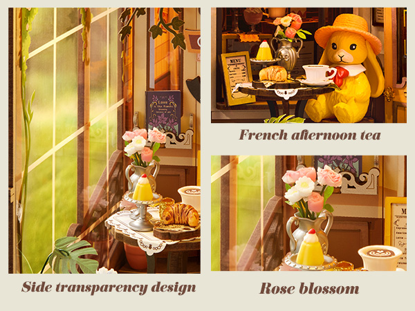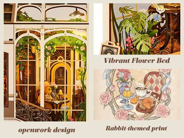 【Unique Design】 Every corner is worth exploring—the croissants on the table, the delicate latte art, the climbing rose vines. Through the window, following the brass sign, feel the warmth of the café you built with your own hands. It's more than just a decoration; it's a story you've given life.