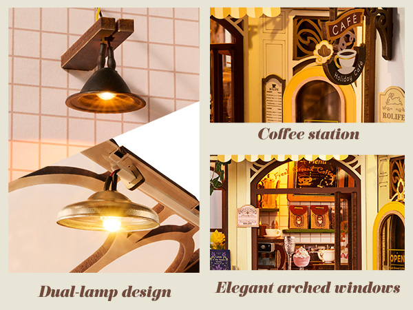 【Warm Light, Soft Atmosphere】 Two soft LED lights bring your mini-café to life: