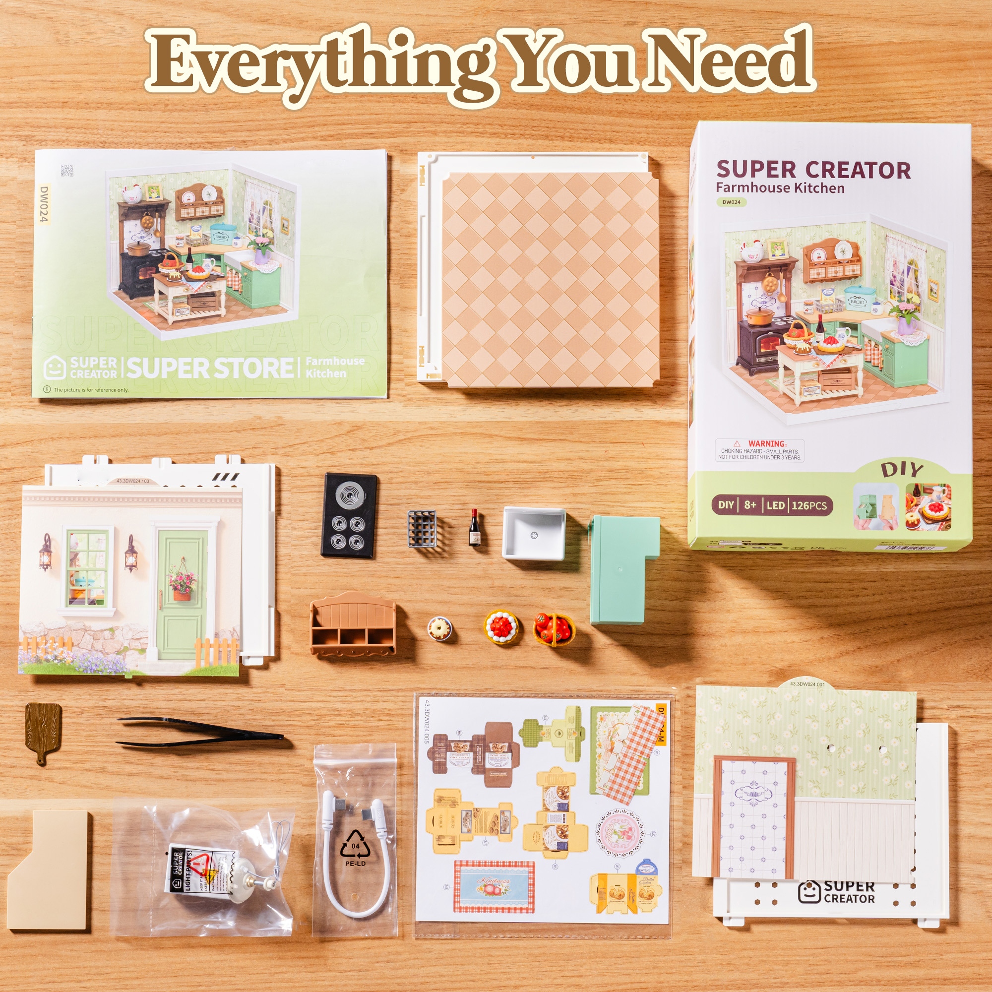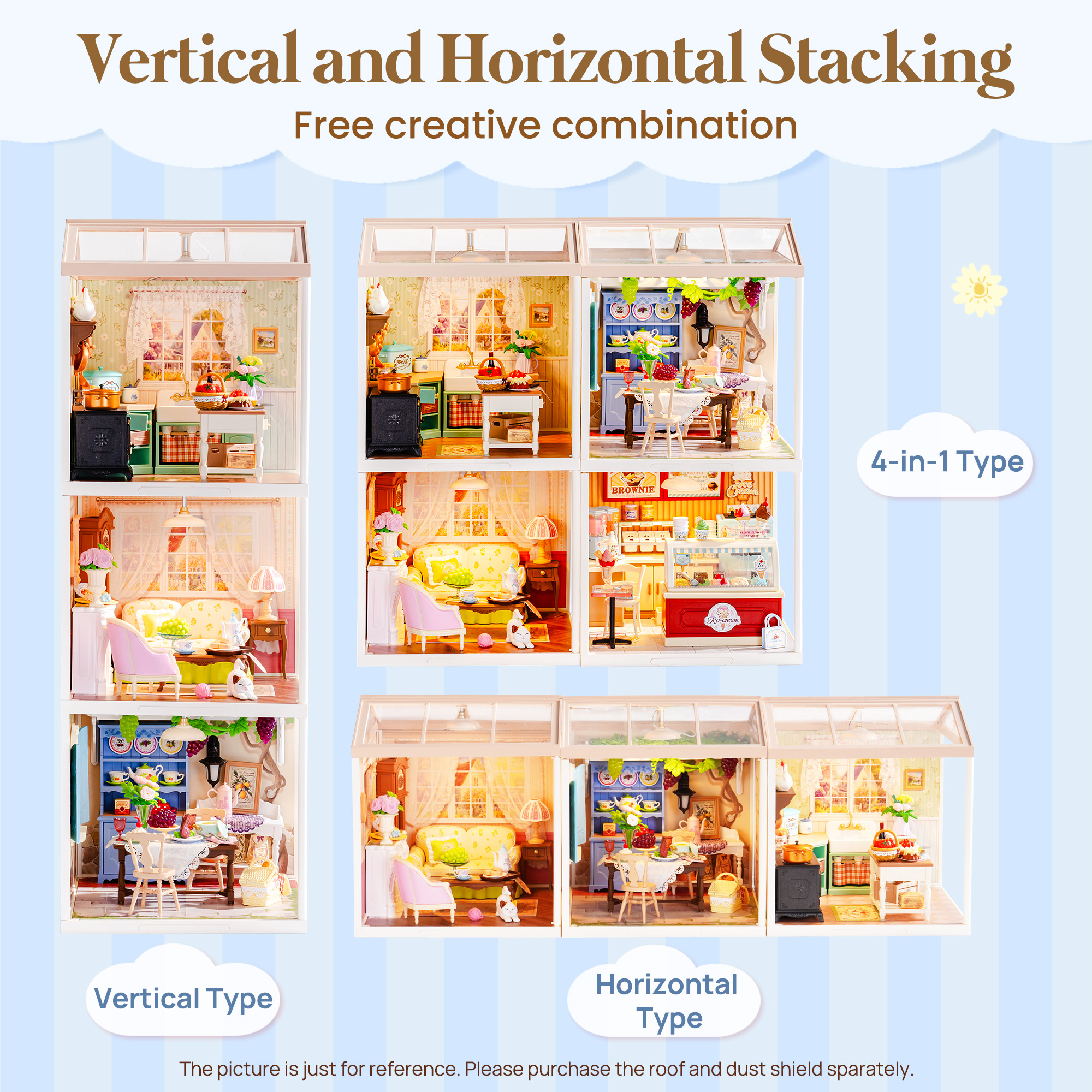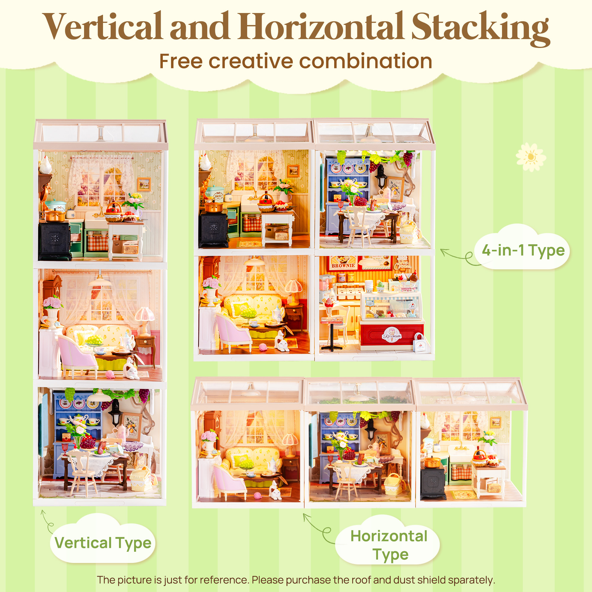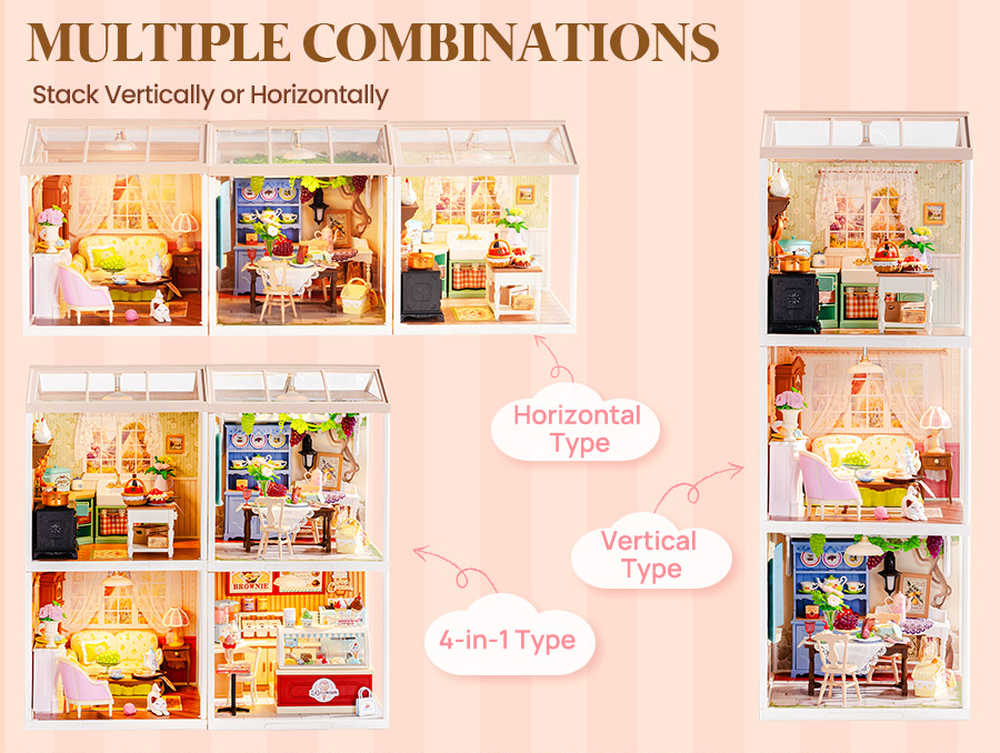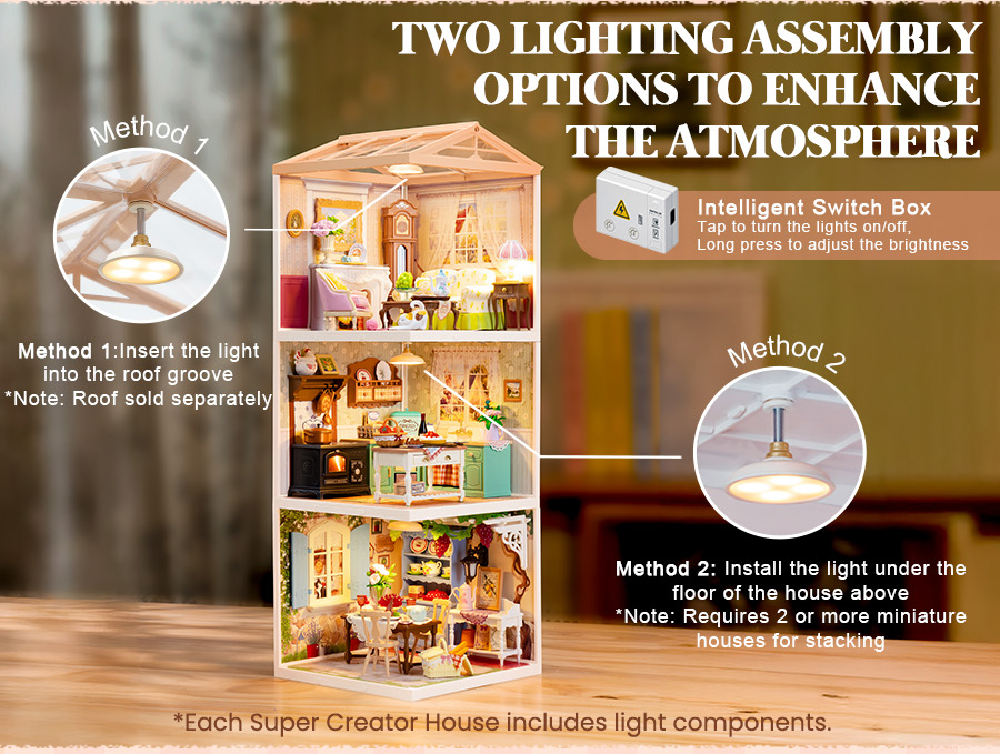 Rolife Super Creators DIY Plastic Mini House Building Set - 3D Puzzle With LED Lights, Compatible With Mini Figures, Multiple Themes Available, Suitable For Teenagers And Adults,DW023 DW024 DW025