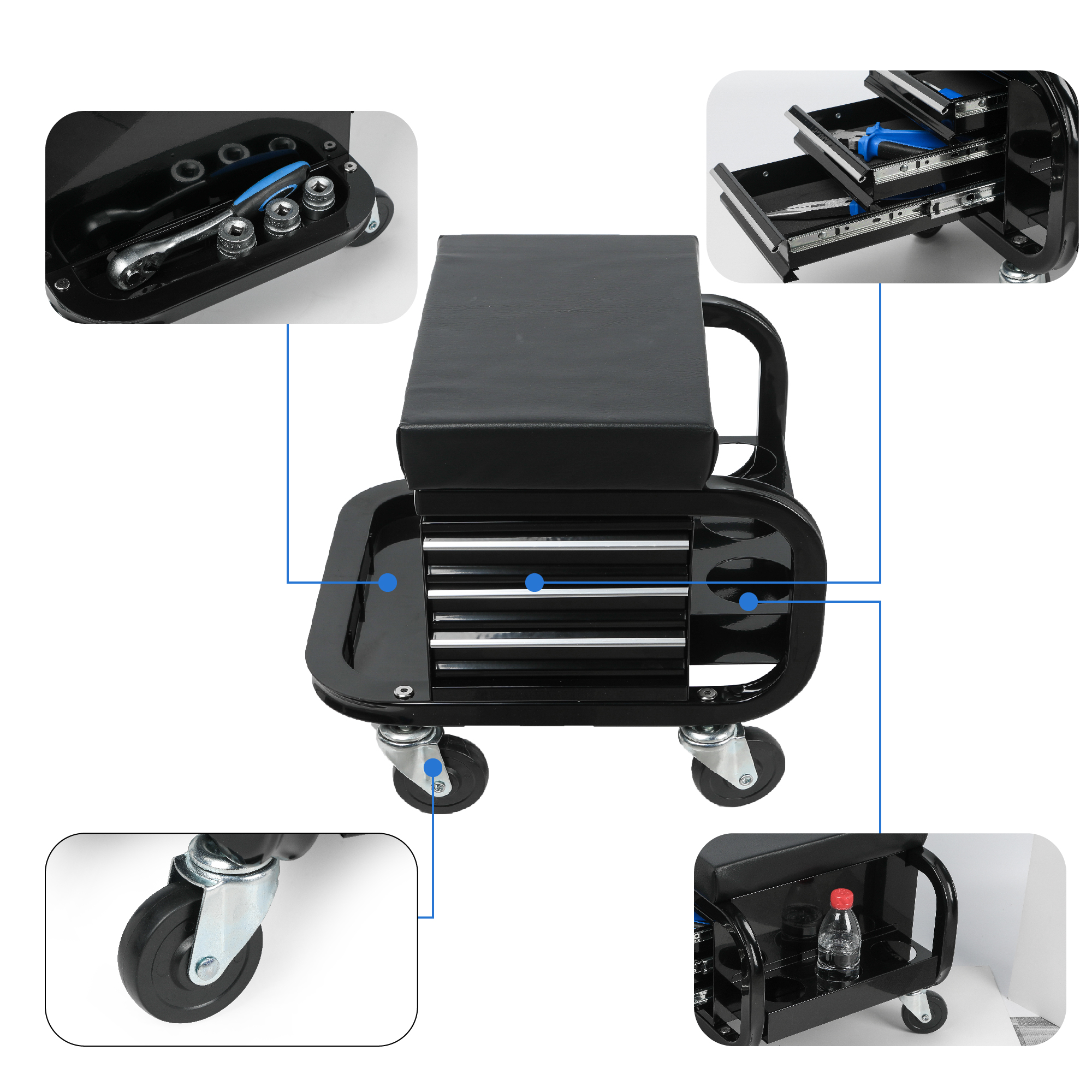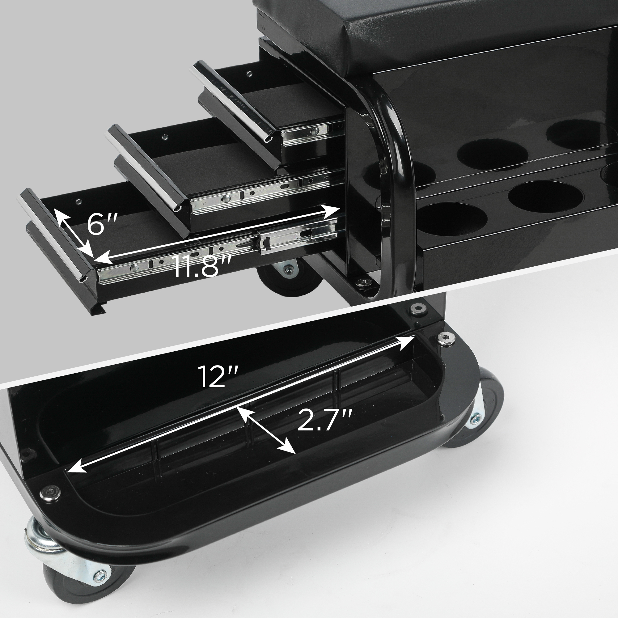 Product Name:Rolling Creeper Garage/Shop Seat with Three Built-in Drawers, Rolling Tool Chest,Black