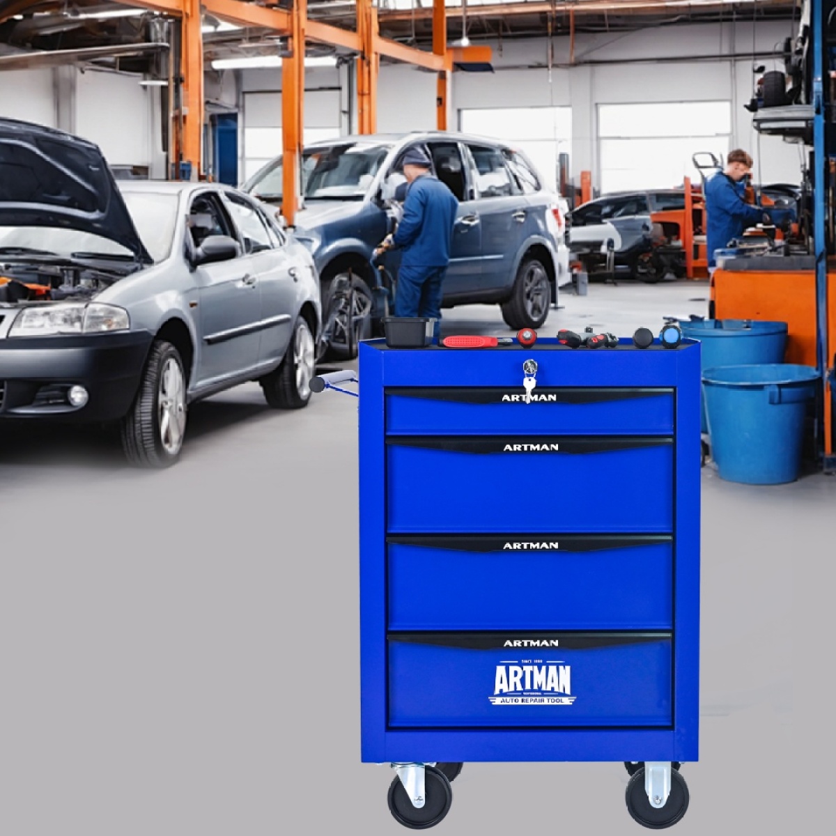 Product Name:Rolling Metal Tool Chest with 4 Drawers, 20" 4-Drawer Tool Chest Cabinet with Ball Bearing Drawer Slides, Steel Tool Storage Box Organizer -BLACK&BLUE