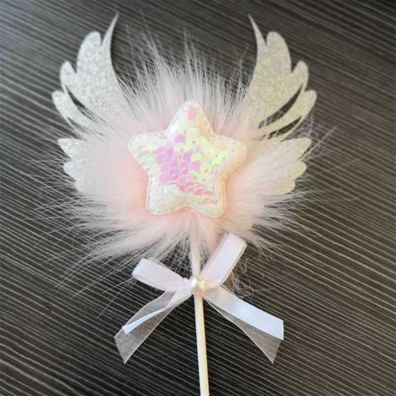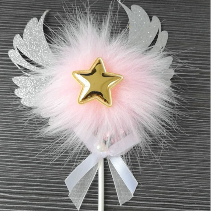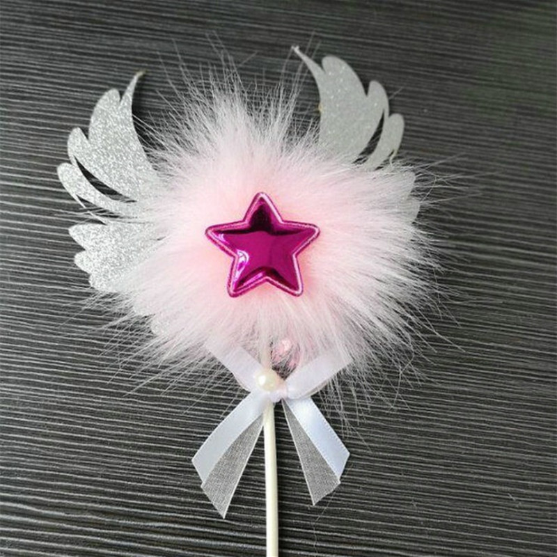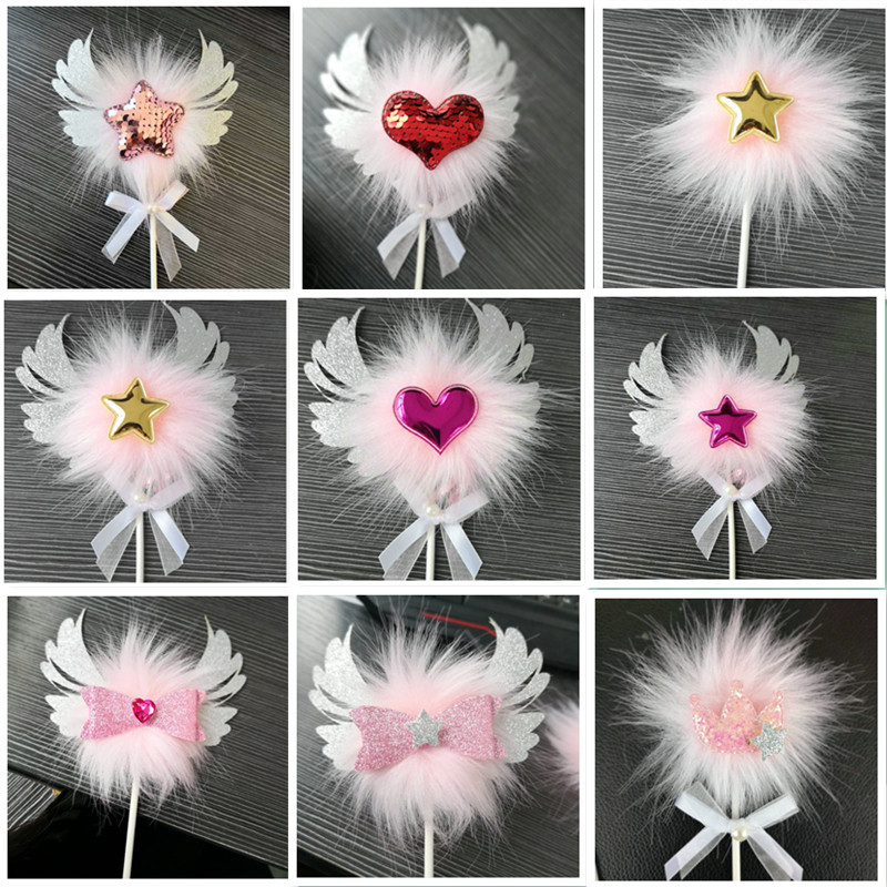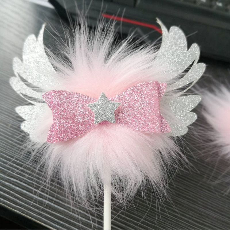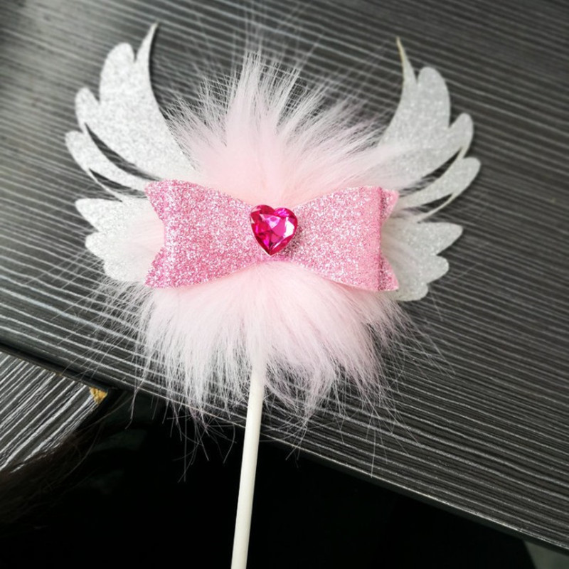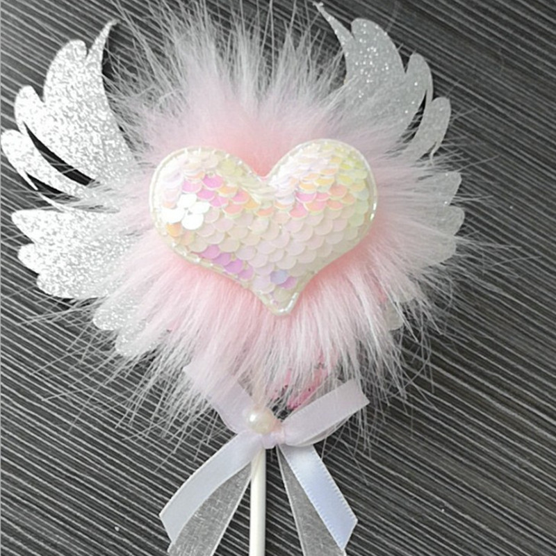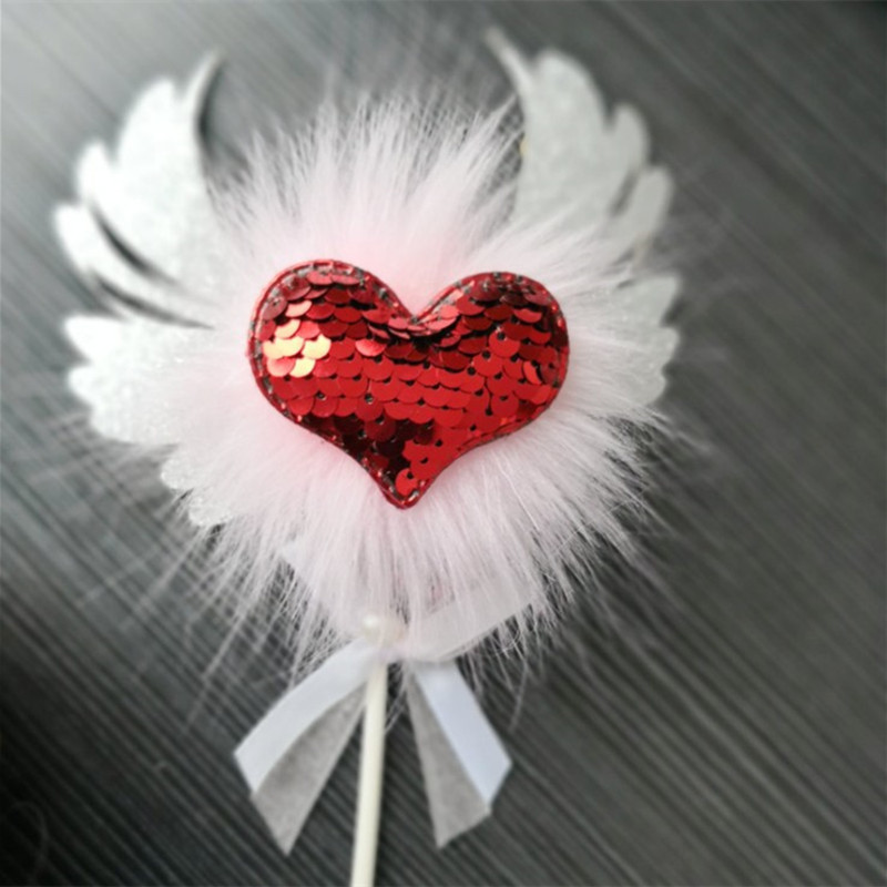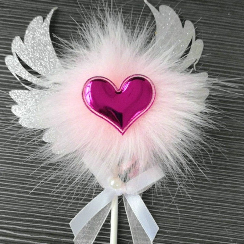 Romantic Heart Pink Sliver Angel Wings Cake Flag Wedding Party Decorations