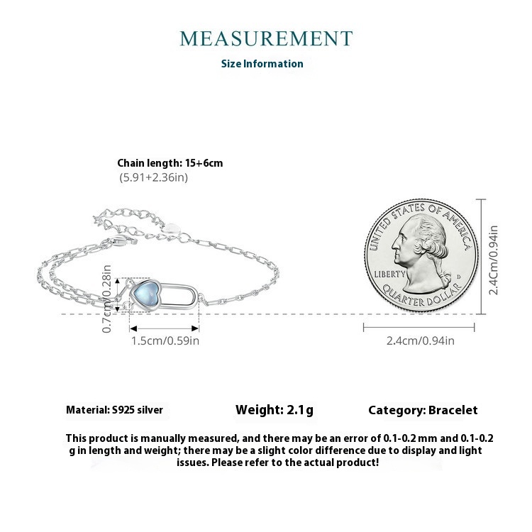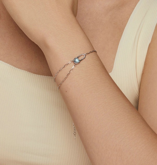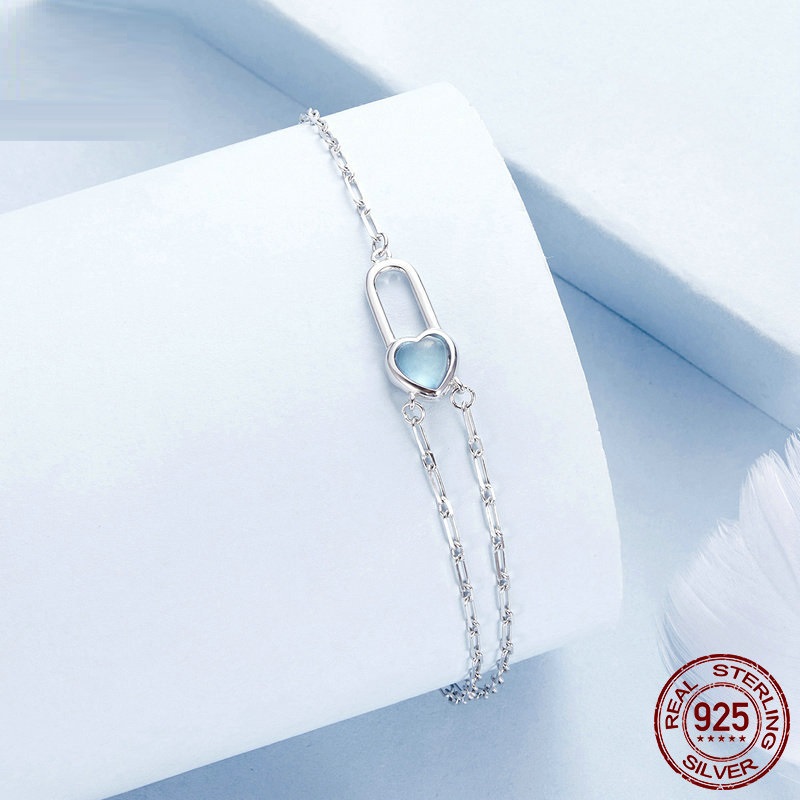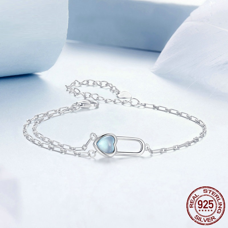 Romantic Heart-shape Lock S925 Sterling Silver Bracelet Jewelry