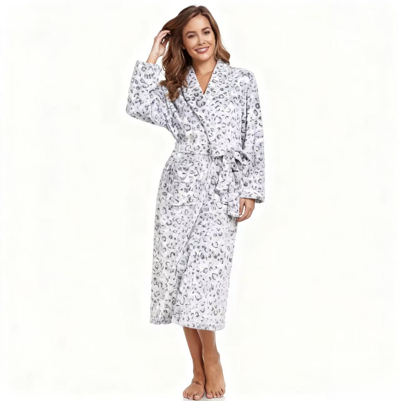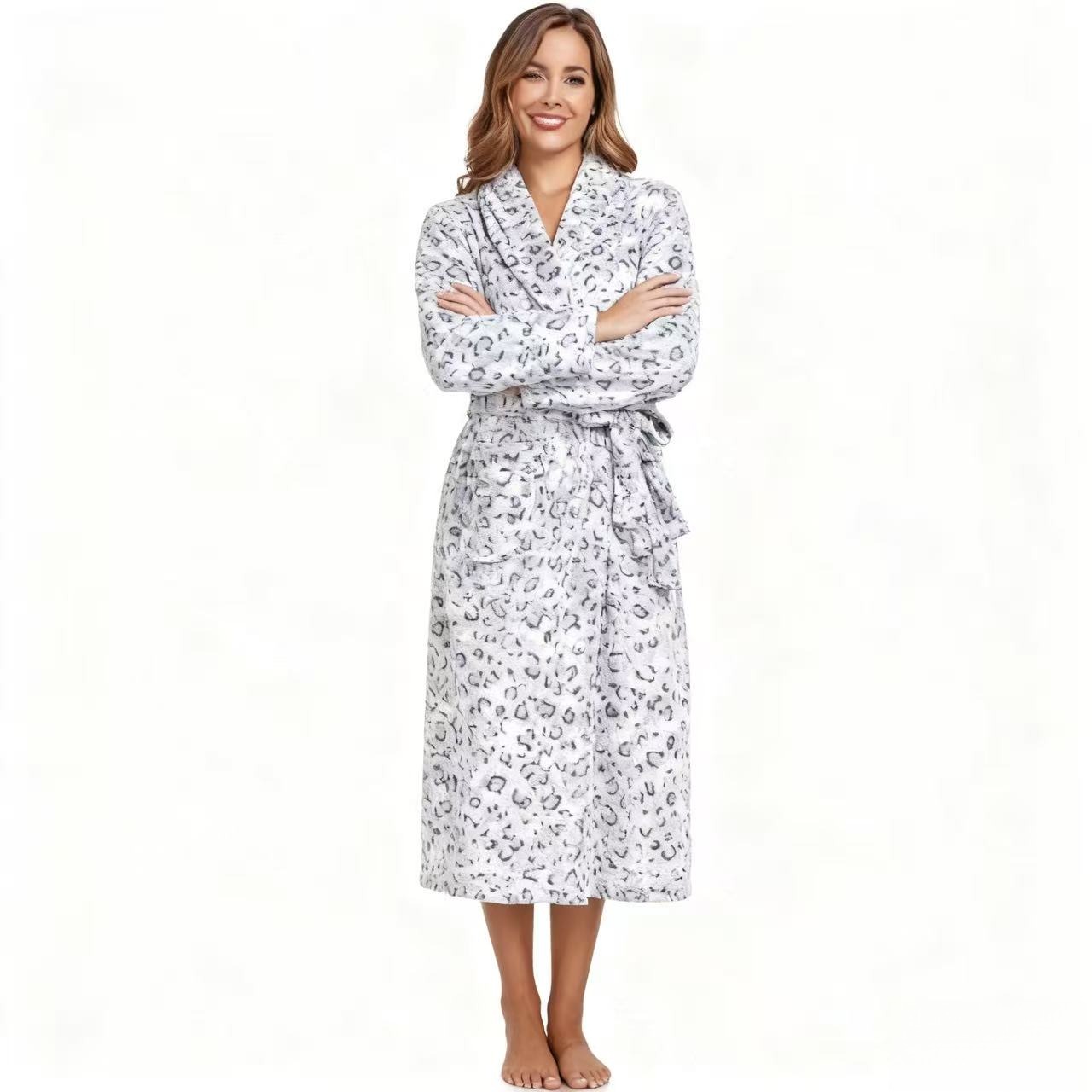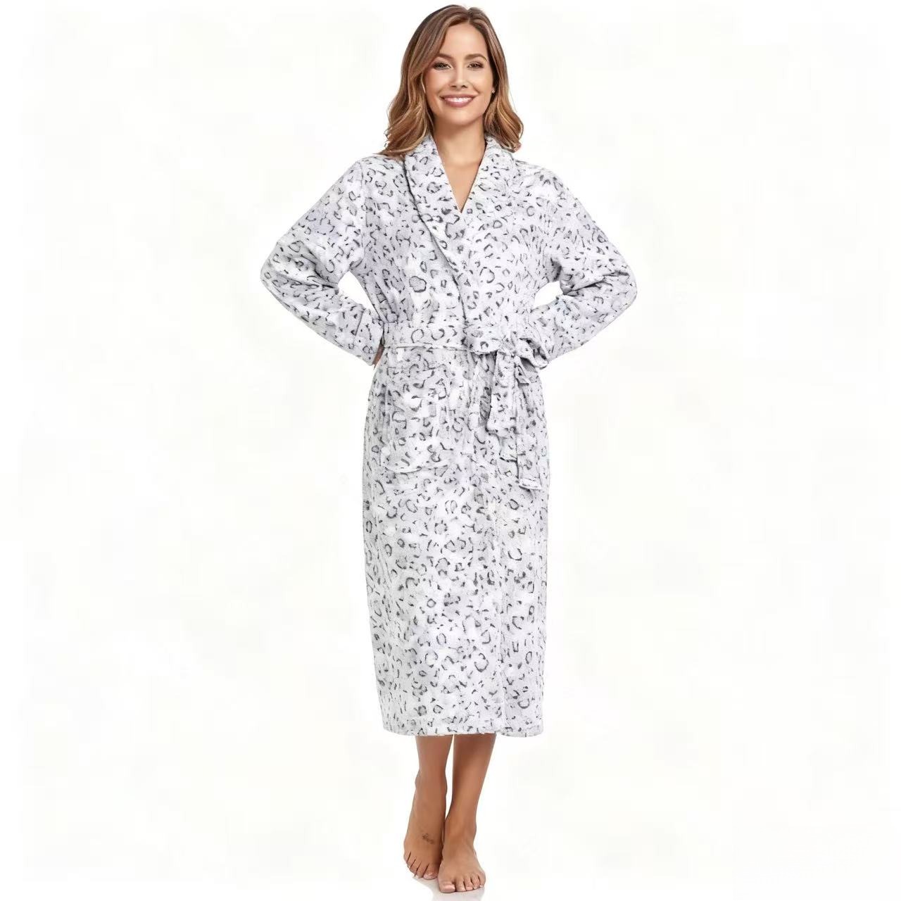RONGTAI Womens Bathrobe Ladies Fleece Plush Warm Long Robes Fleece Nightgown Sleepwear