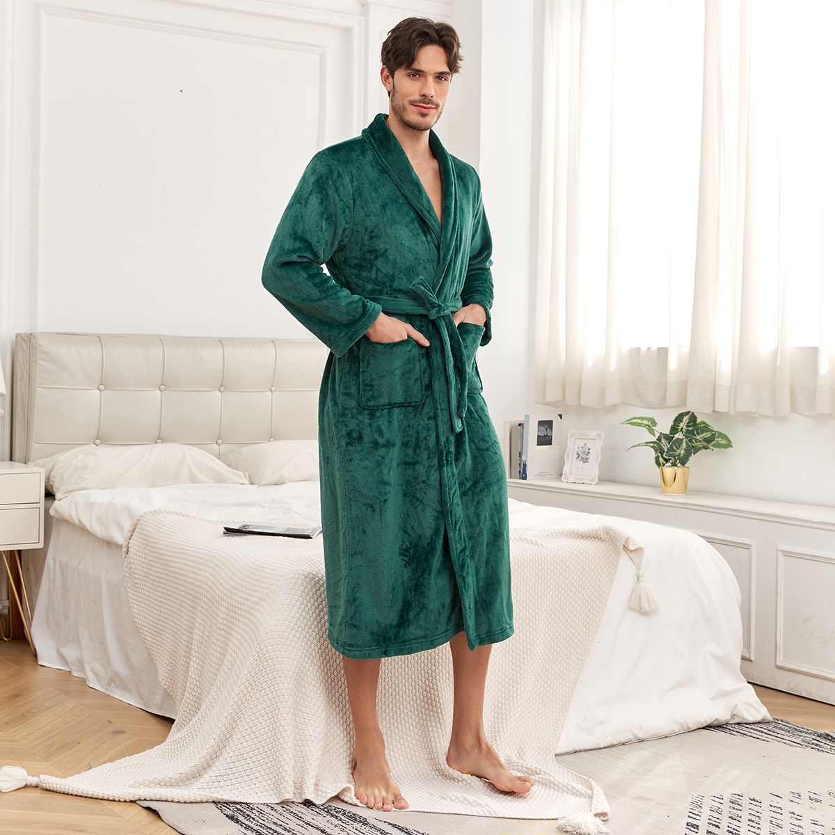 Premium 300GSM Flannel Fabric Experience extreme warmth with heavyweight 300GSM brushed flannel - 30% thicker than standard robes for superior insulation during cold winters. Soft, skin-friendly fleece lining resists pilling after washes.