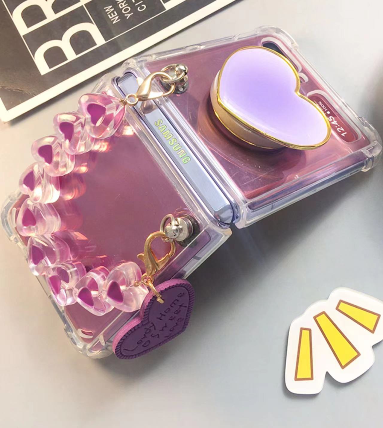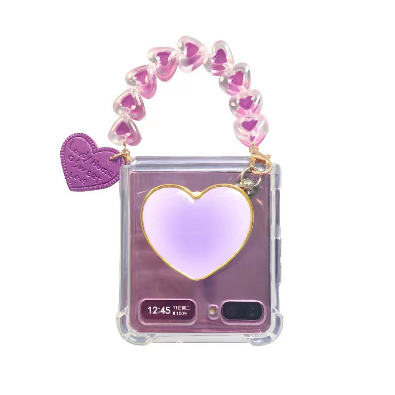 Color: Z Flip3 transparent fall proof heart bracelet, Z Flip4 transparent fall proof heart bracelet