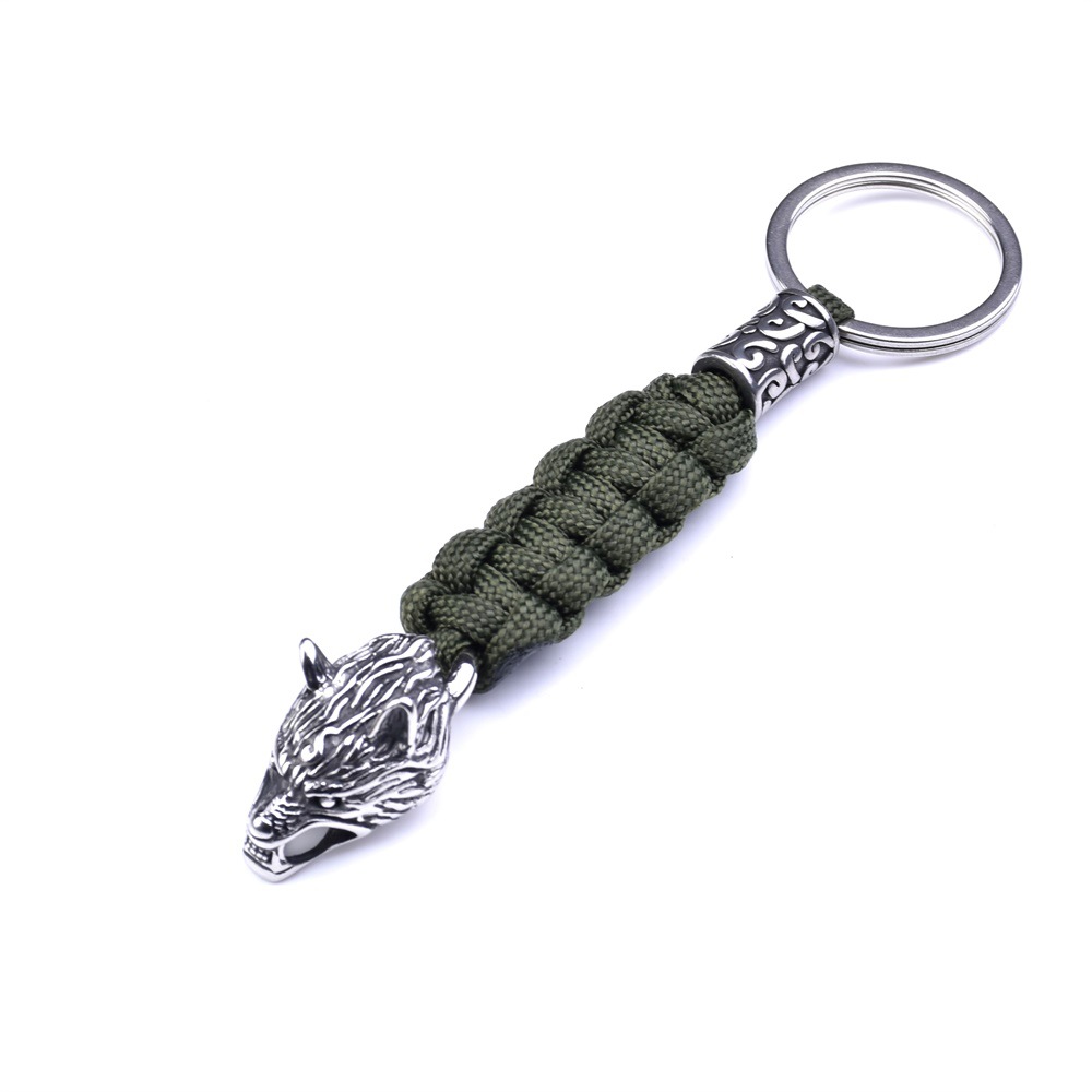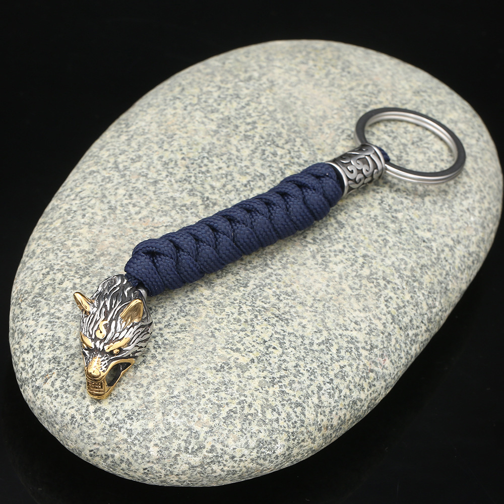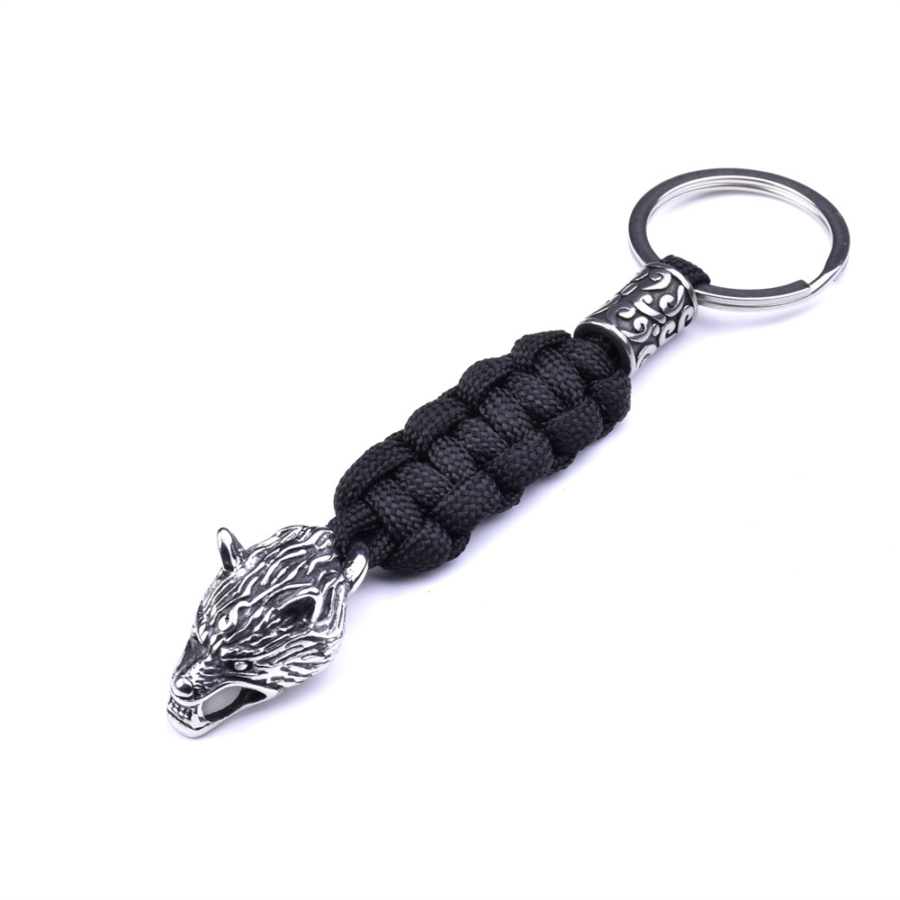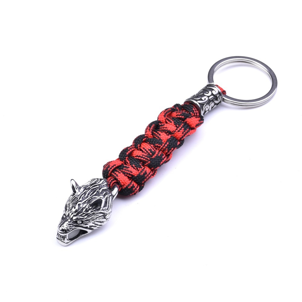 Material: Umbrella rope+stainless steel wolf head+stainless steel beads+stainless steel keyring