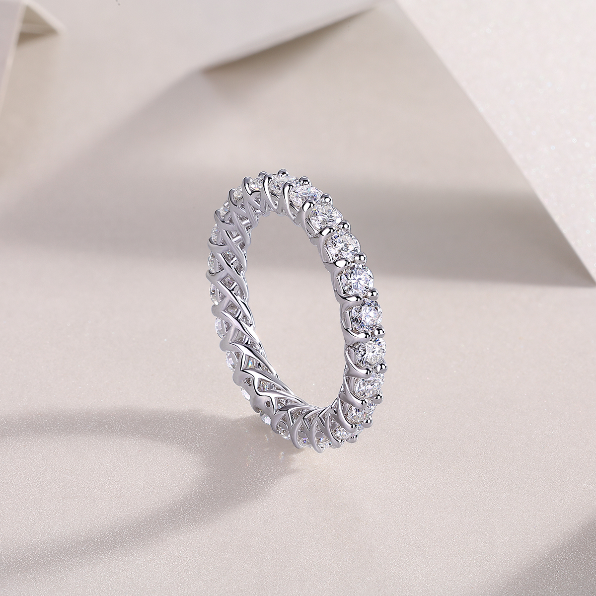 Rose - Set With Top-quality Moissanite S925, Silver And Platinum-plated Diamond Wedding Ring. The Ring Can Be Inspected With A Diamond Pen