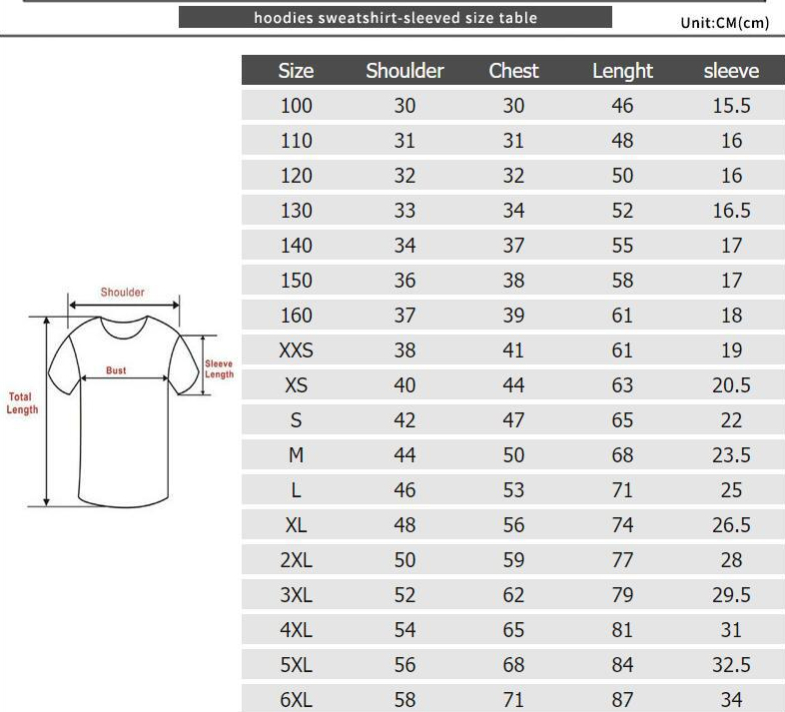 Size: XXS,XS,S,M,L,XL,XXL,XXXL,XXXXL,5XL,6XL,100,110,120,130,140,150,160