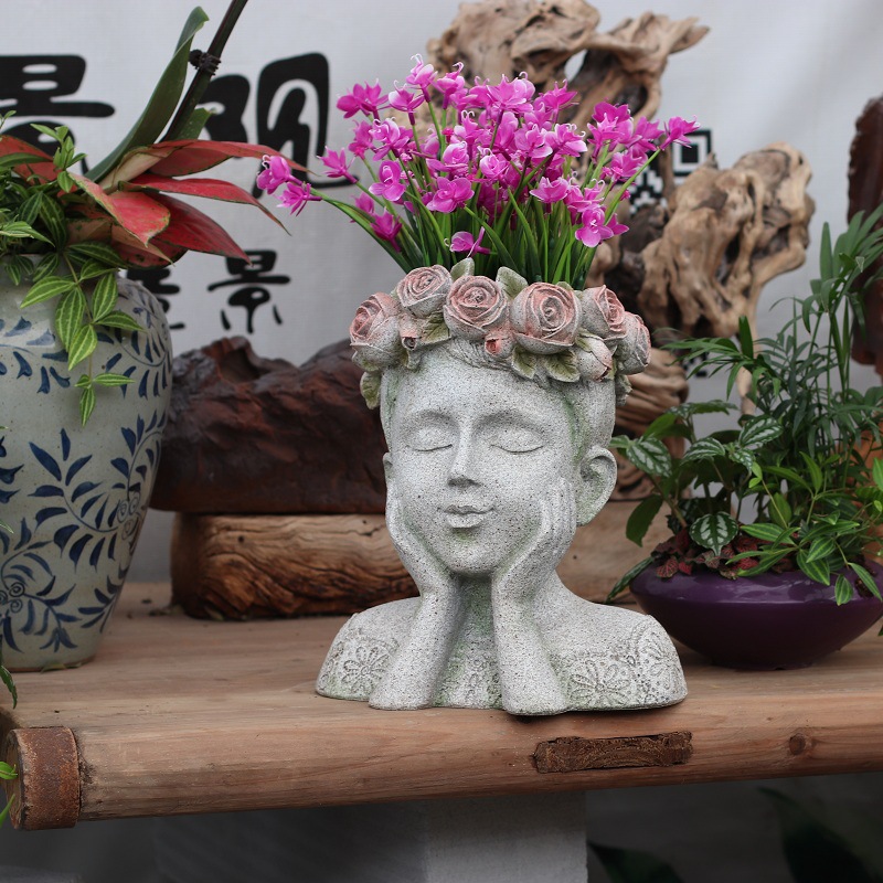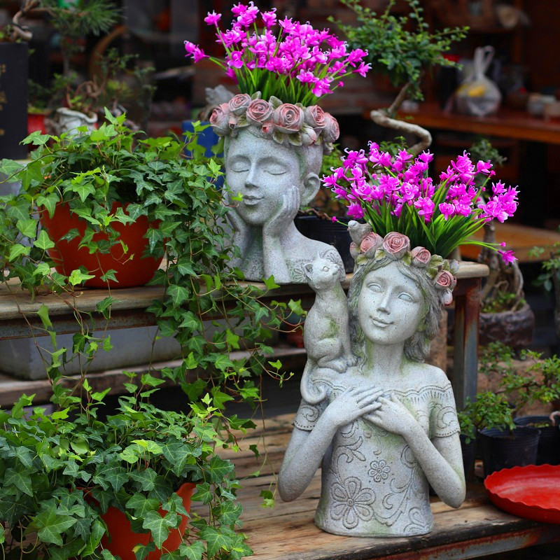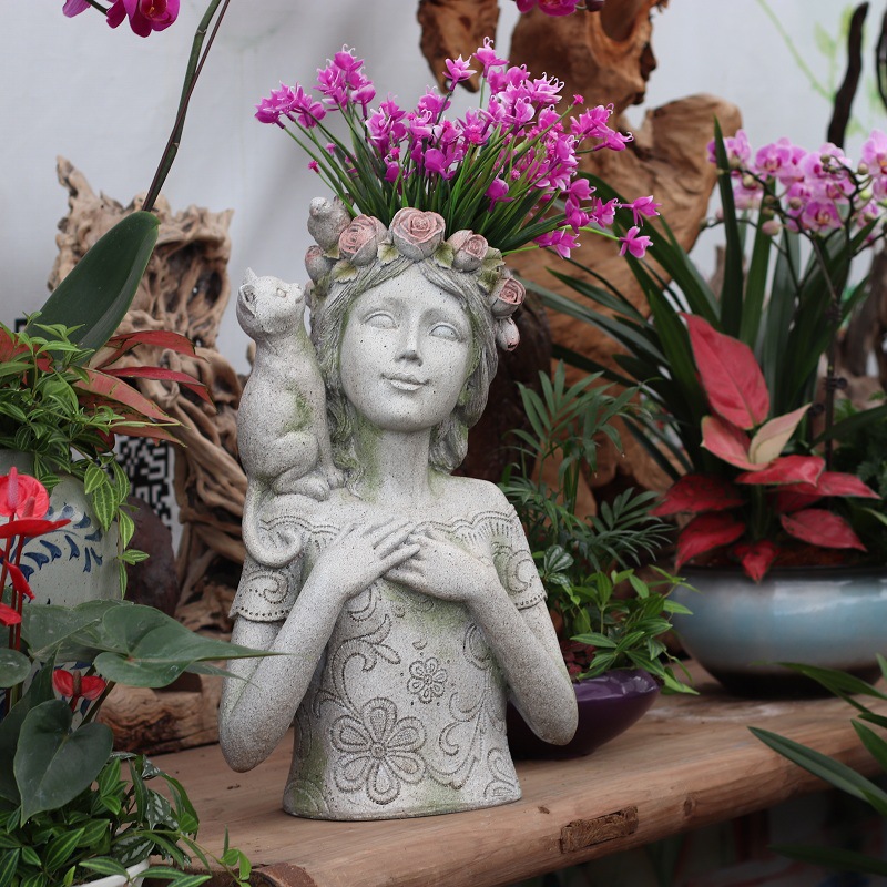 Color: Girl and Cat Flower Pot, Rose Little Girl Flower Pot
