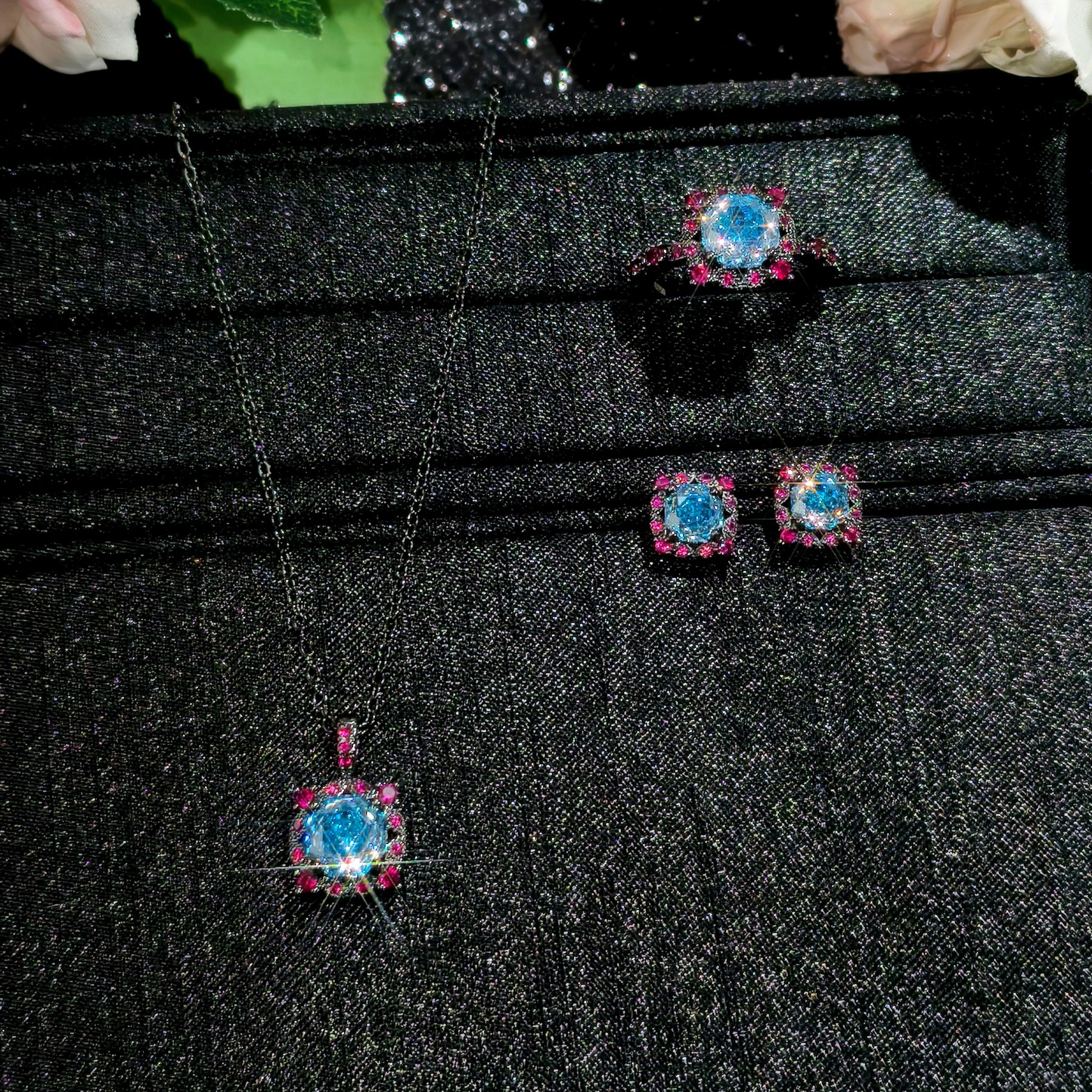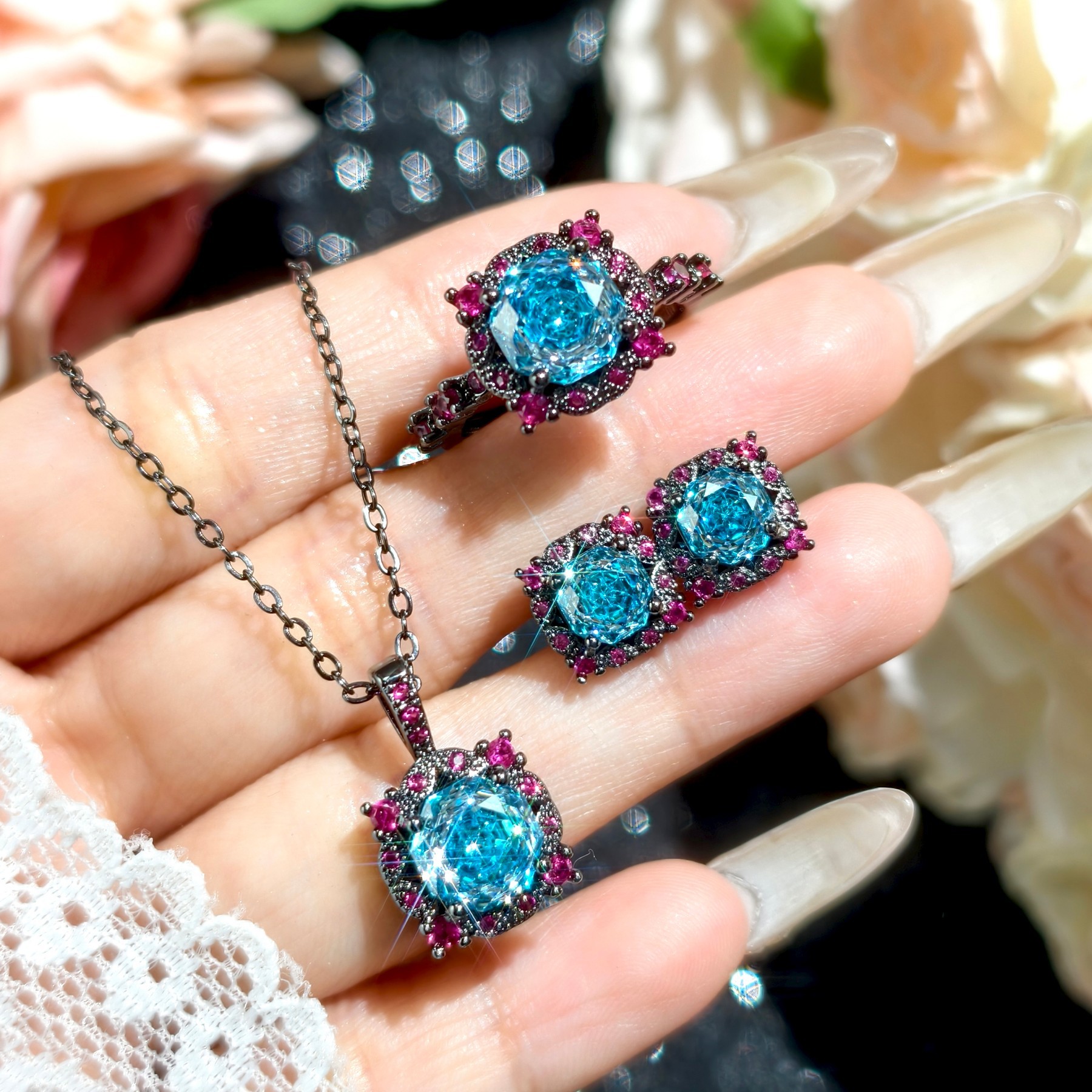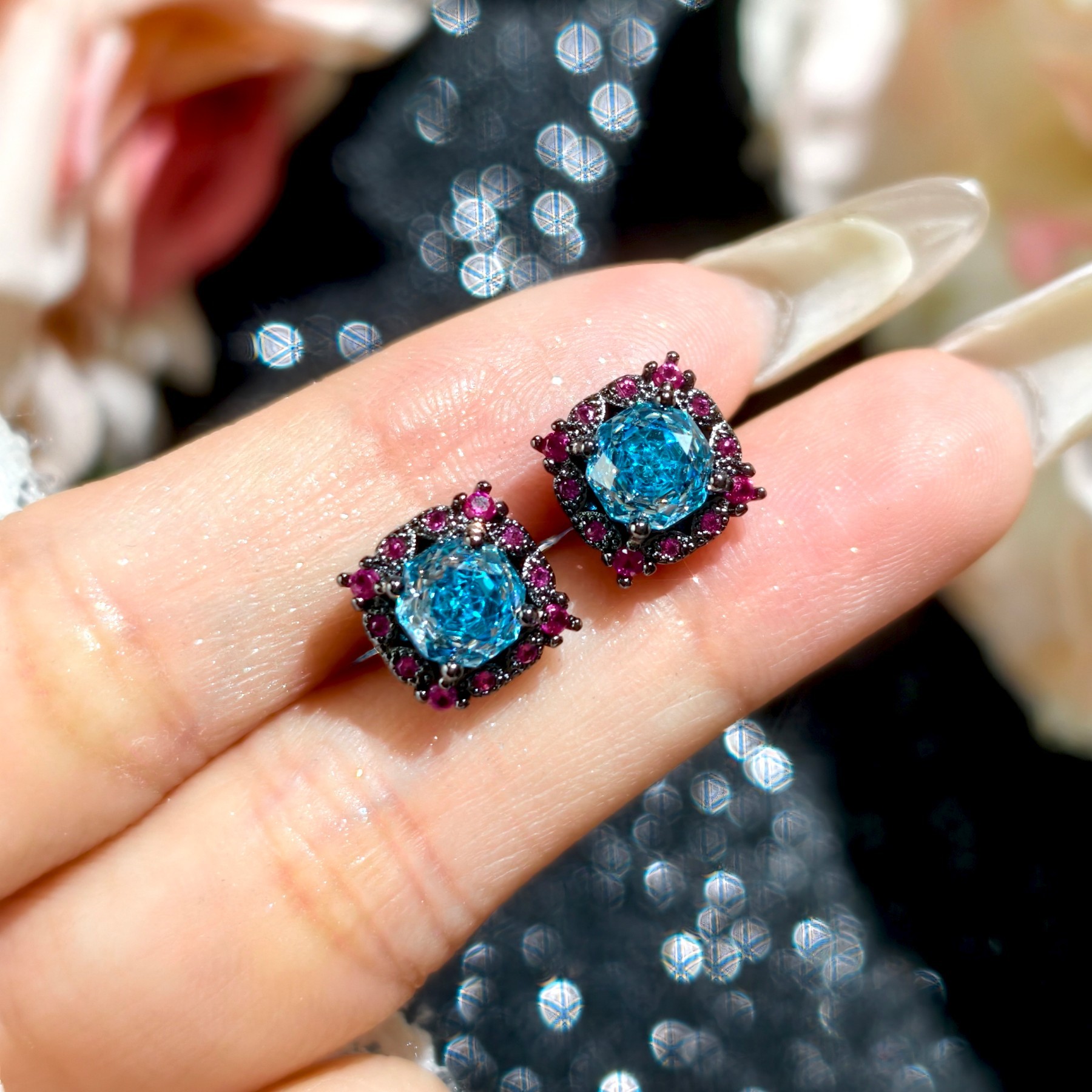 Rose-cut Brilliant Sugar-heart Navy Zircon Stud Earrings