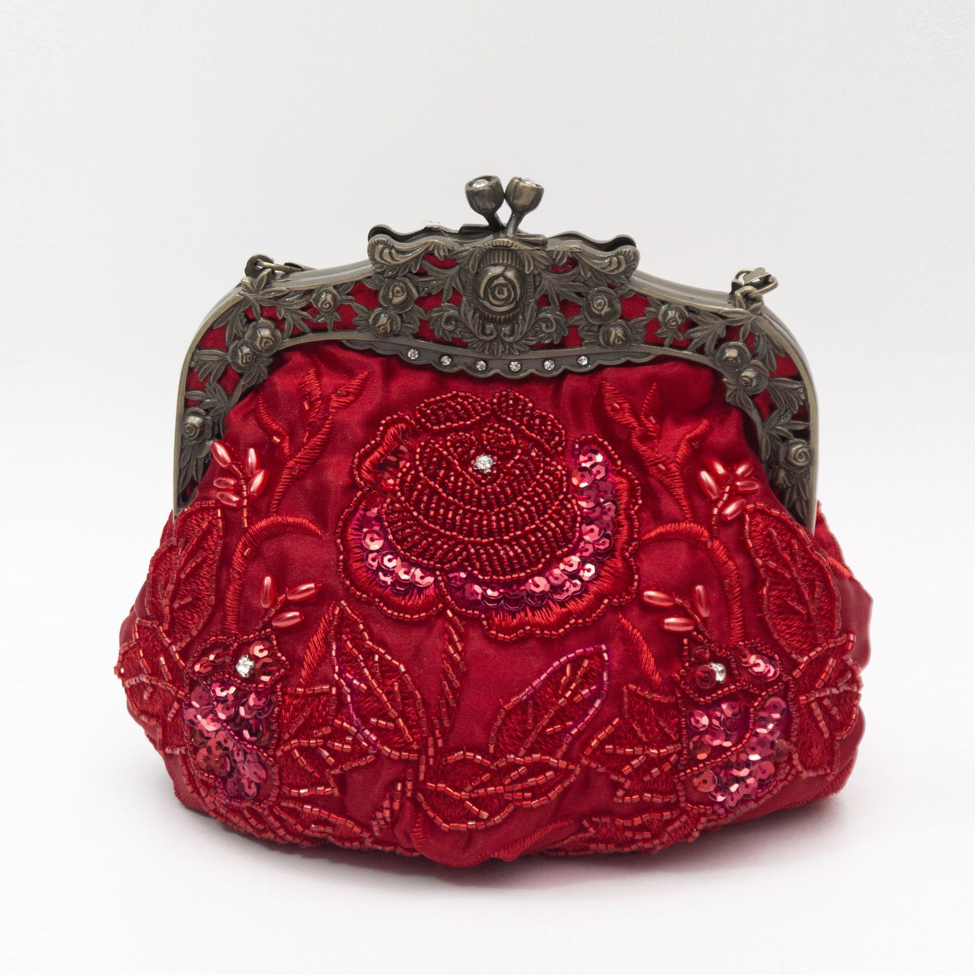 Rose Embroidered Sequins Embroidered Beads Dinner Bag Vintage