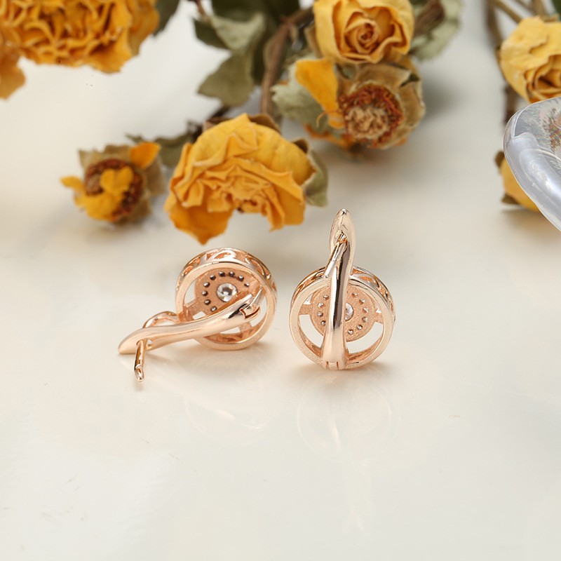 Rose Gold Micro-Set Zircon Round Earrings In Copper