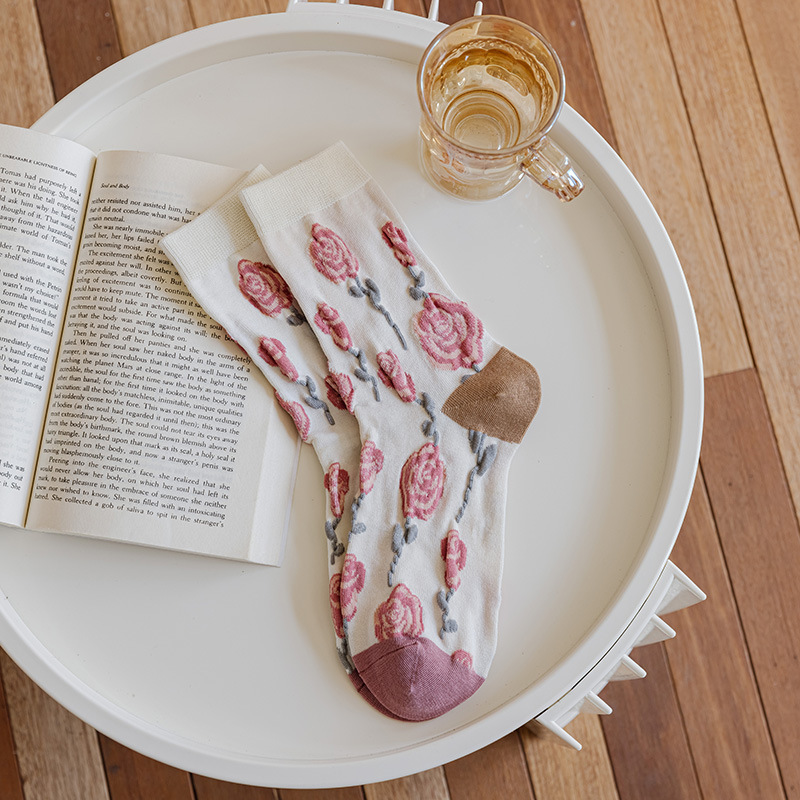 Colour: white with pink flowers, white with branches, embroidered flowers, embossed pink flowers