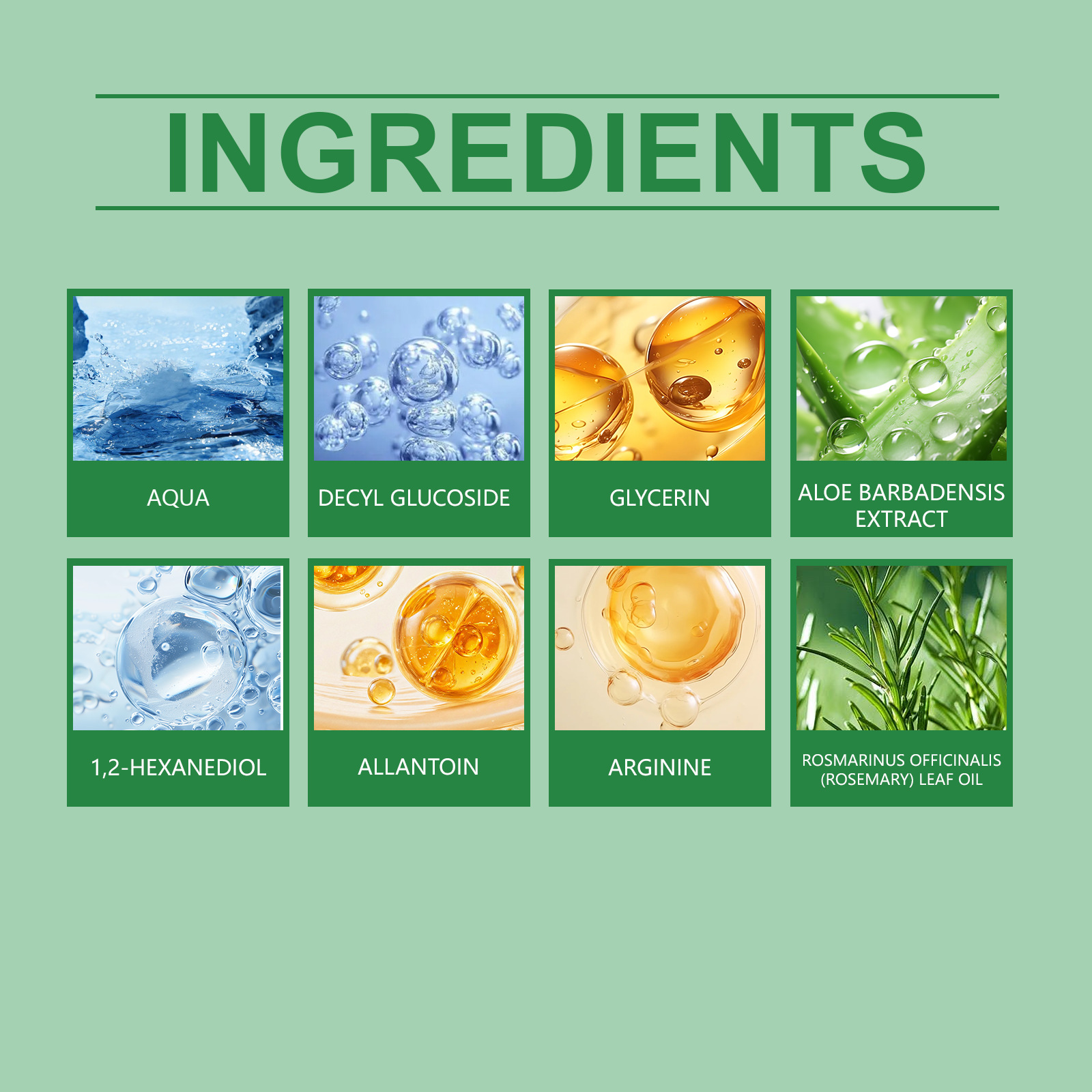 Ingredients: water, decyl glucoside, glycerin, aloe vera extract, 1,2-hexanediol, allantoin, arginine, rosemary leaf oil.
