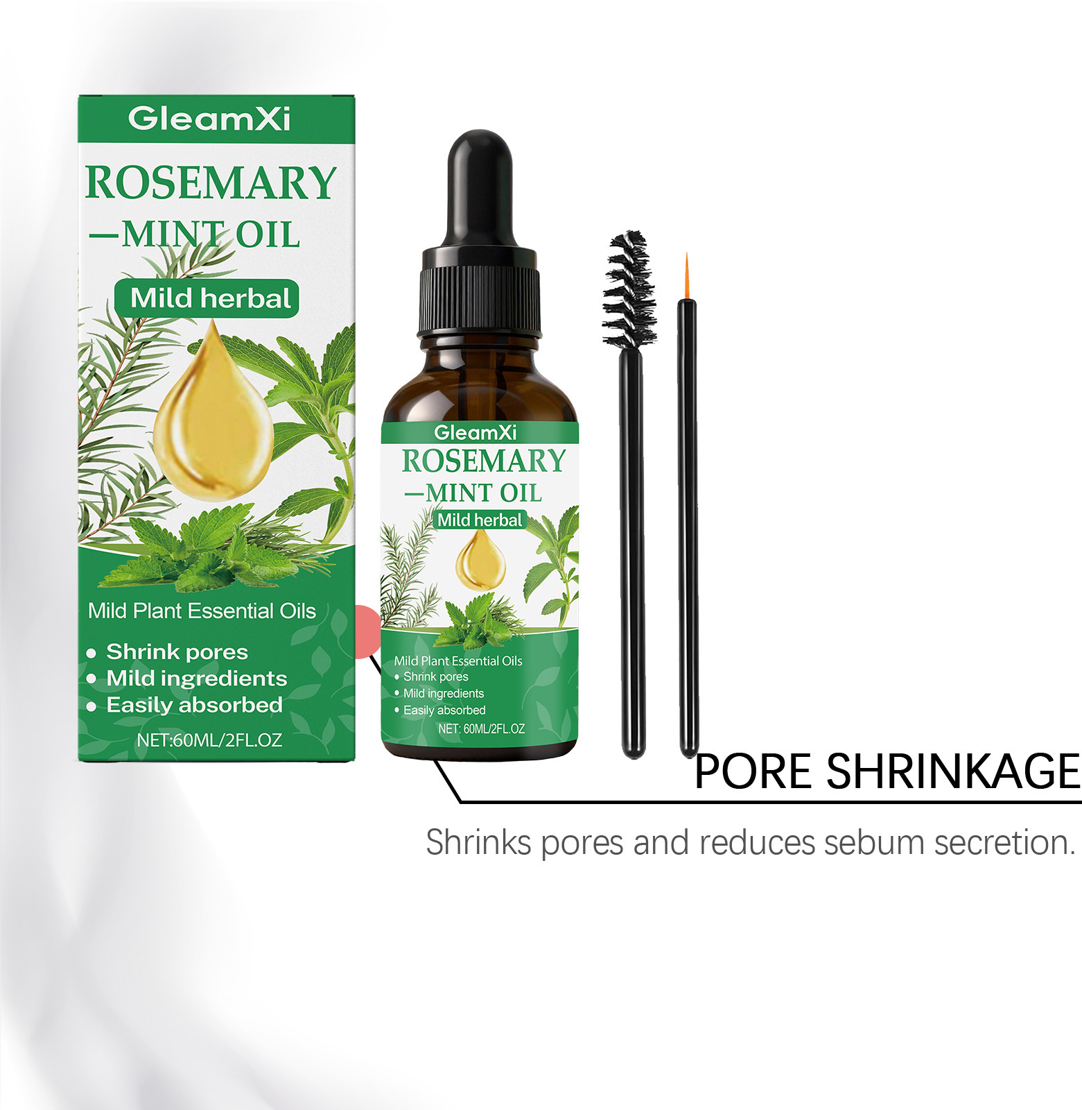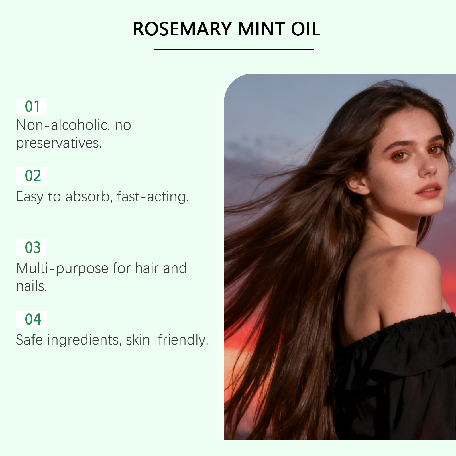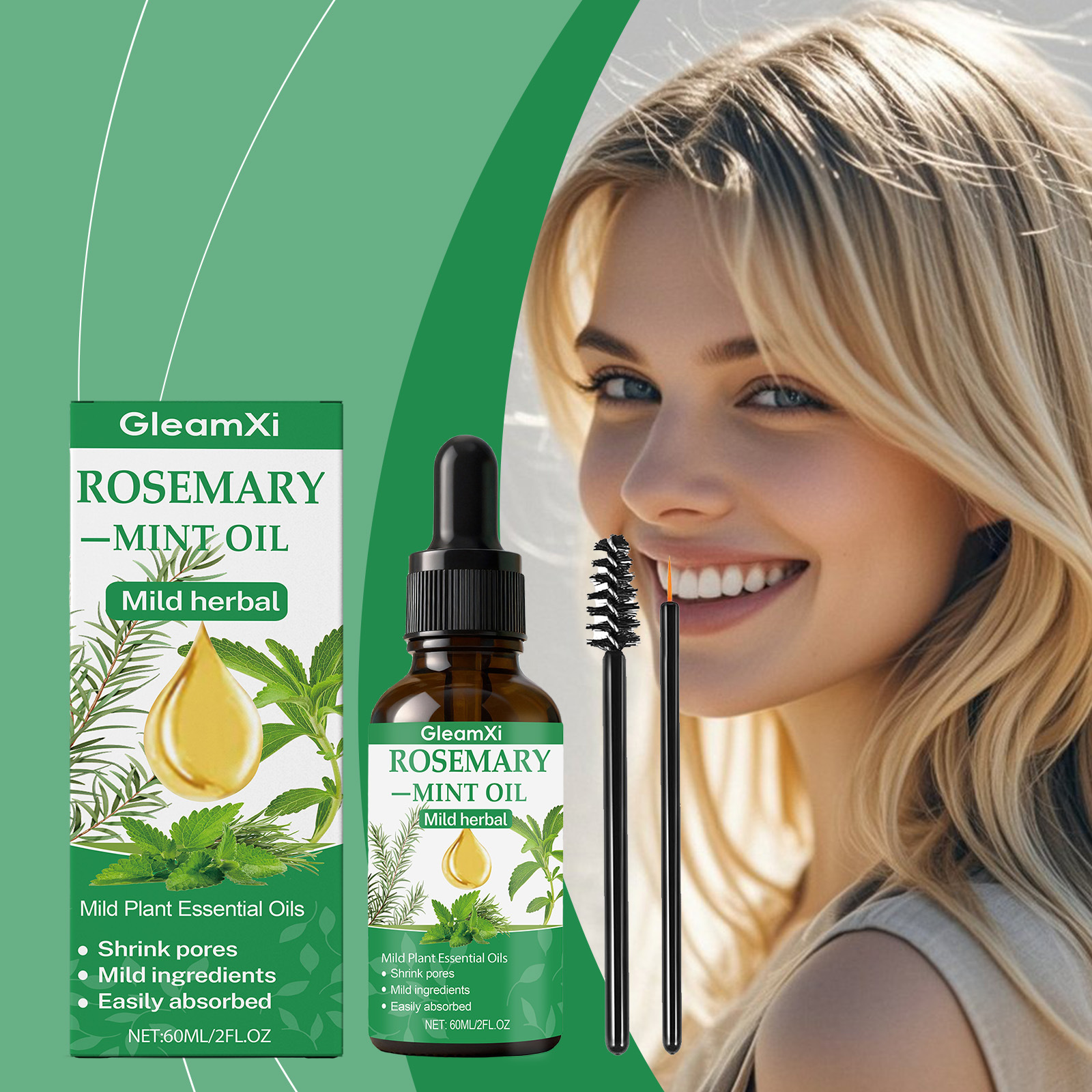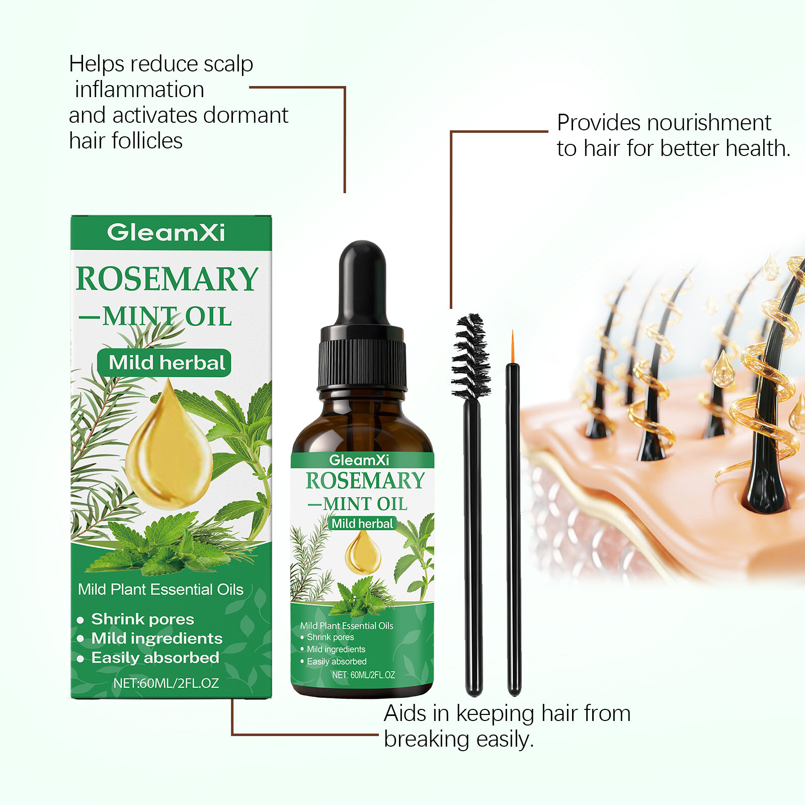 Ingredients: water, glycerin, hydrogenated castor oil, 1,2- hexanediol, biotin, mint extract, rosemary extract.