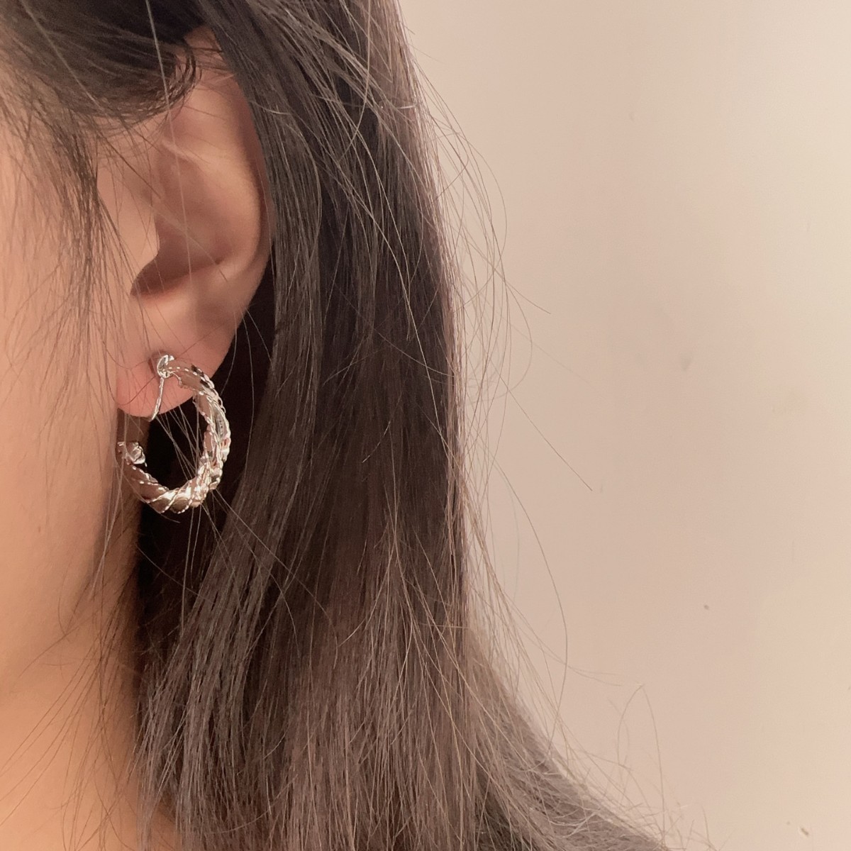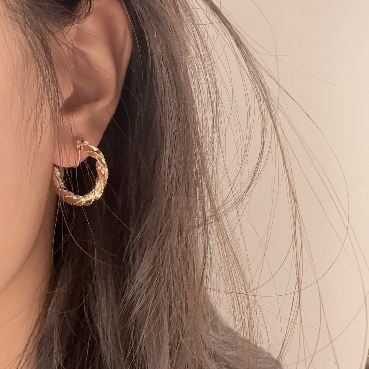 Colors: A pair of silver stud earrings, a pair of silver clip-on earrings, a pair of gold stud earrings, a pair of gold clip-on earrings