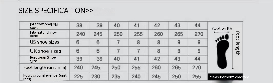 Size: 36, 37, 38, 39, 40, 41, 42, 43, 44, 45