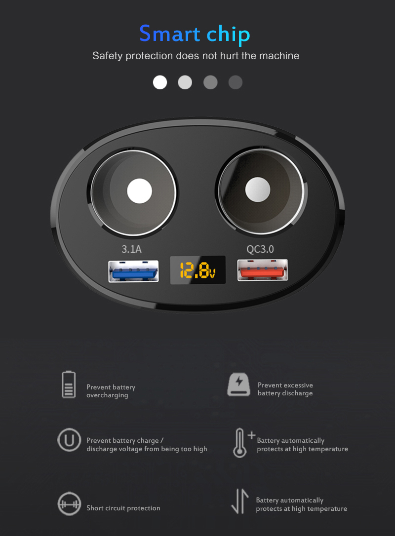 9. Built-in over-current, over-voltage, over-temperature, short-circuit, over-power and other multiple protection functions to ensure stable current output, protect your car and your equipment.