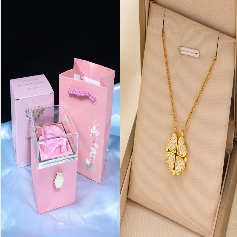 3.【Rotating Drawer Jewelry Box】The upper part of the rose gift box is made of a beautiful and transparent acrylic transparent cover, the inner side of the acrylic transparent cover is flowers, and the inner side of the gift box is designed as a jewelry box rotating drawer.